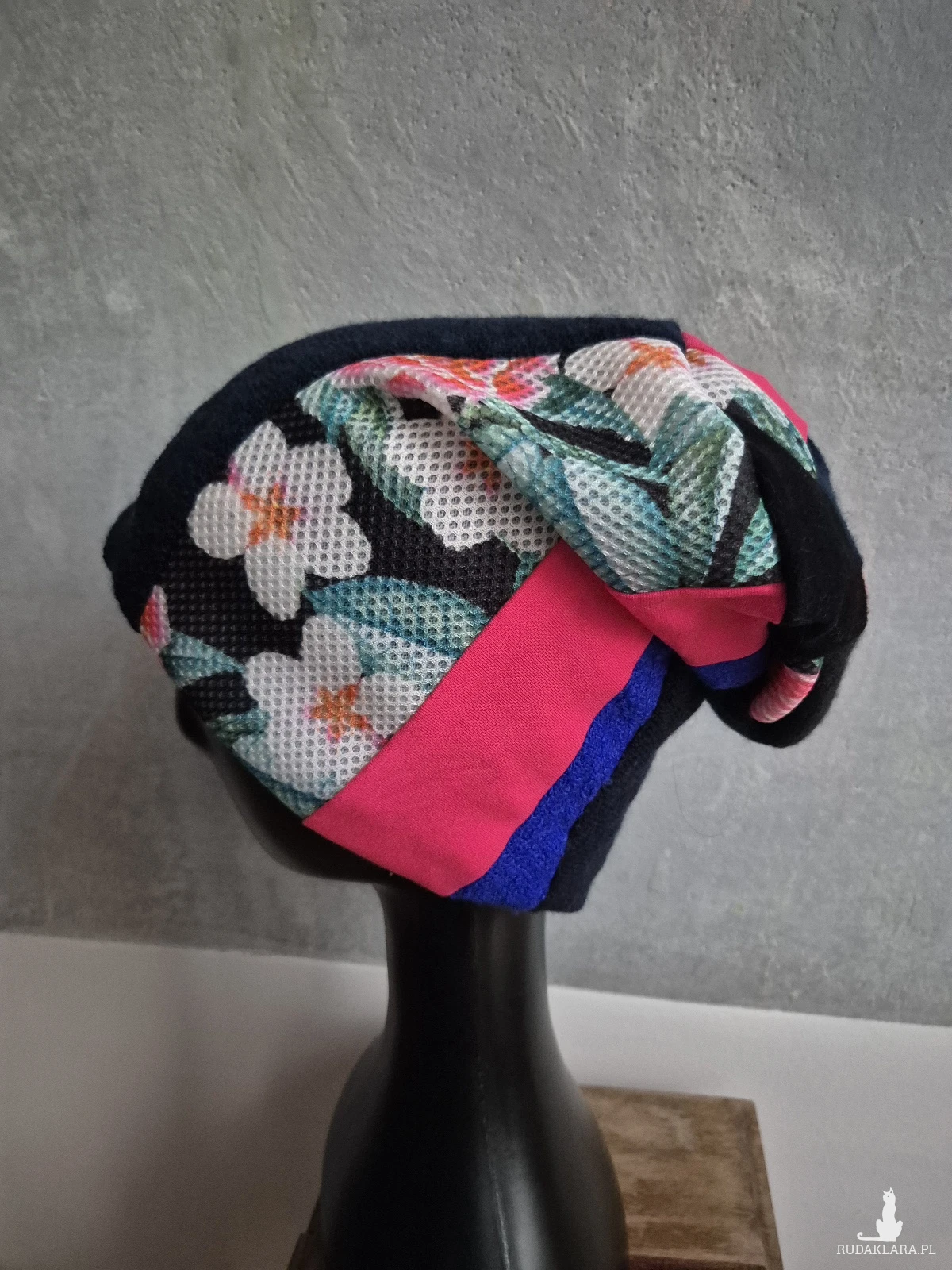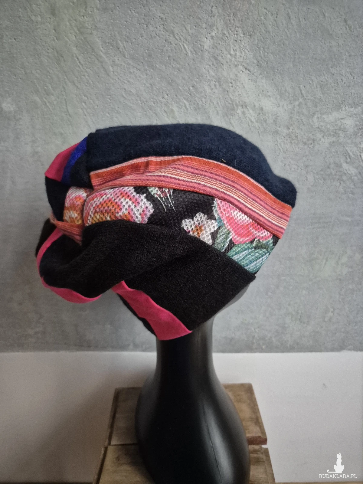 Czapka damska patchworkowa uniwersalna  i miła, dobra na codzienne noszenie, wykonana w pojedynczym egzemplarzu rękodzieło polecam boks a1