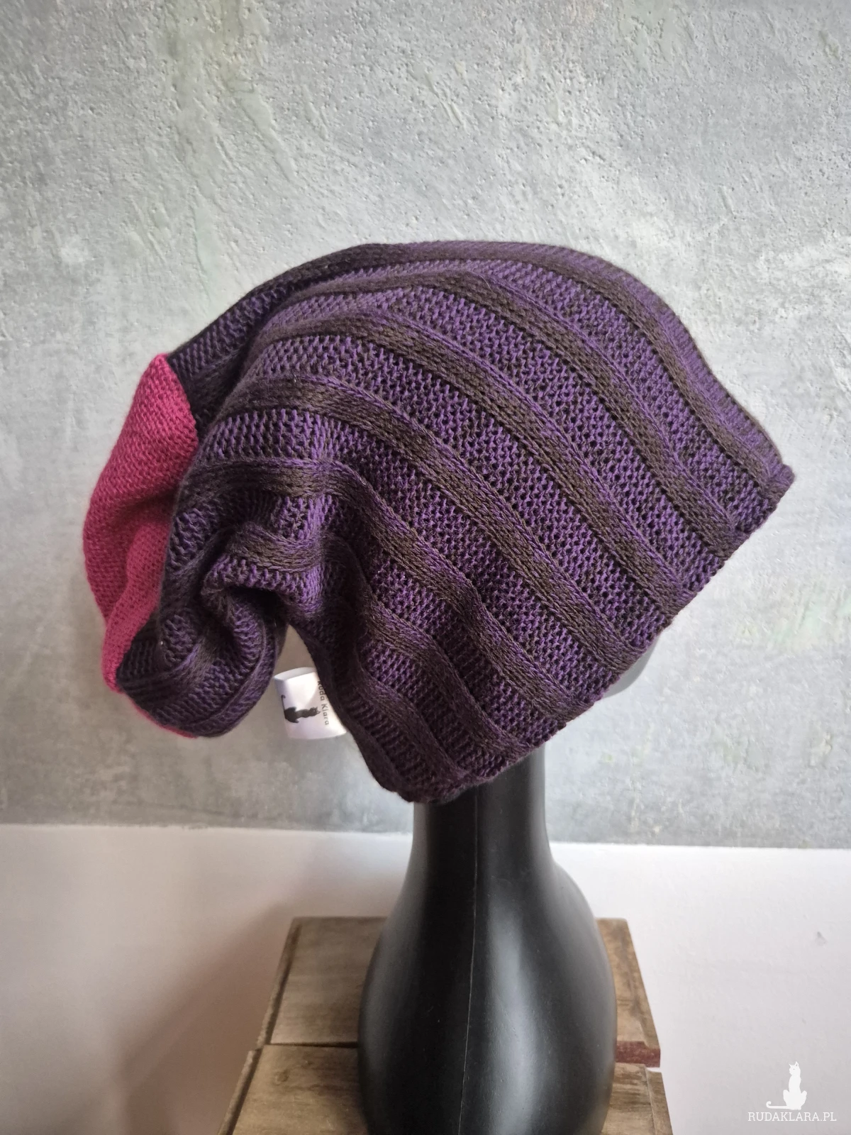Czapka damska Smerfetka różowo-fioletowa uniwersalna  i miła, dobra na codzienne noszenie, wykonana w pojedynczym egzemplarzu rękodzieło polecam boks a1