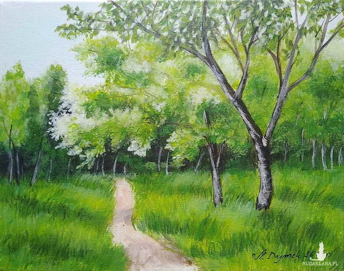 Jeden z kilkudziesięciu ręcznie malowanych obrazów, przedstawiających pejzaże, których motywem przewodnim jest piękno lasów, gór, potoków, zmieniająca się roślinność na przestrzeni dni i miesięcy. Krajobrazy tworzą serie kolorystyczne: "wiosna", "lato", "jesień", "zima".
