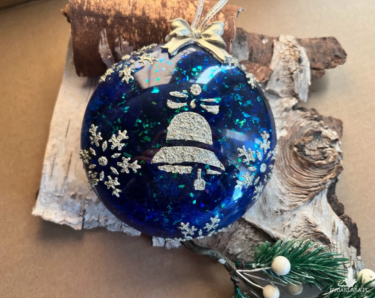 Oryginalne i bardzo efektowna bombka-medalion w imitacji niebieskiej miki .Wykonane na medalionie akrylowym o śr. 11 cm. Przyozdobione elementami sztukaterii w kolorze starej patyny. To propozycja dla osób, które lubią nietypowe ozdoby świąteczne. Wykonana jest w technice mixmedia, która pozwala na uzyskanie naprawdę ciekawych efektów dekoracyjnych. Bombkę możesz wykorzystać do powieszenia w oknie. Dobrze będzie prezentować się ona również na wigilijnym stole.. W tej postaci produkt gotowy do natychmiastowej wysyłki.