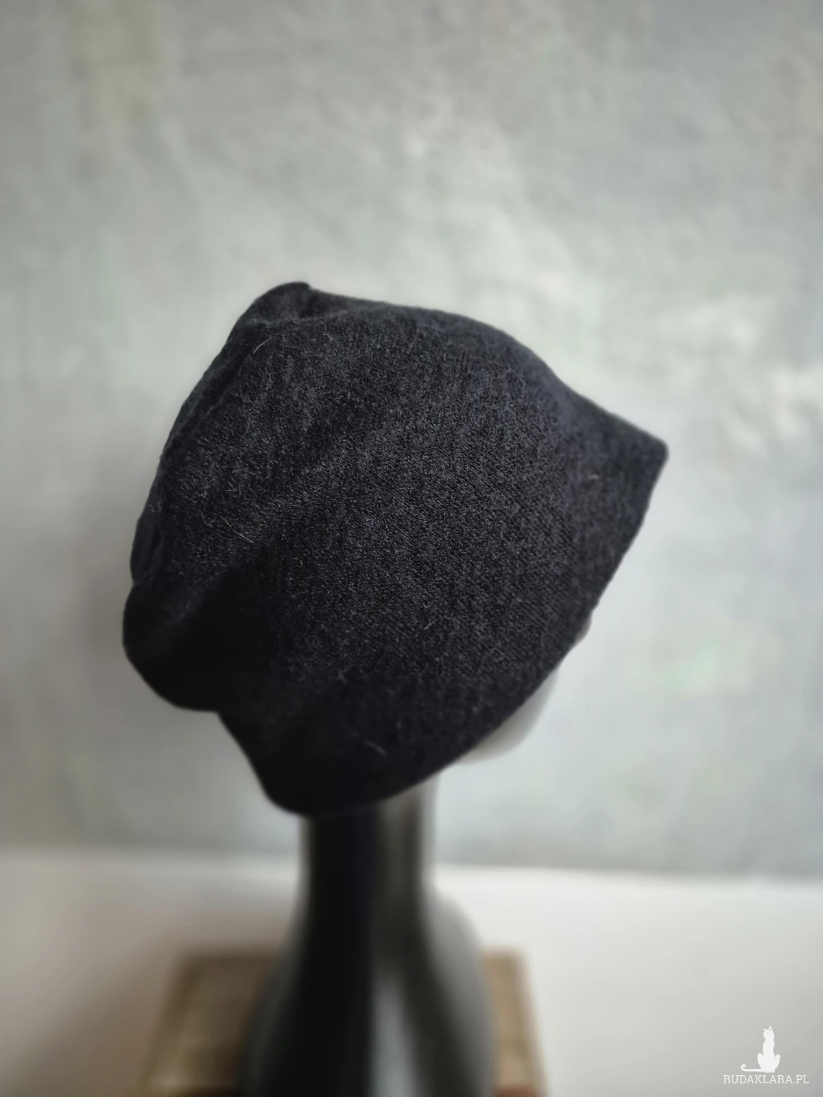Czapka damska czarna uniwersalna  i miła, dobra na codzienne noszenie, wykonana w pojedynczym egzemplarzu rękodzieło polecam boks a1