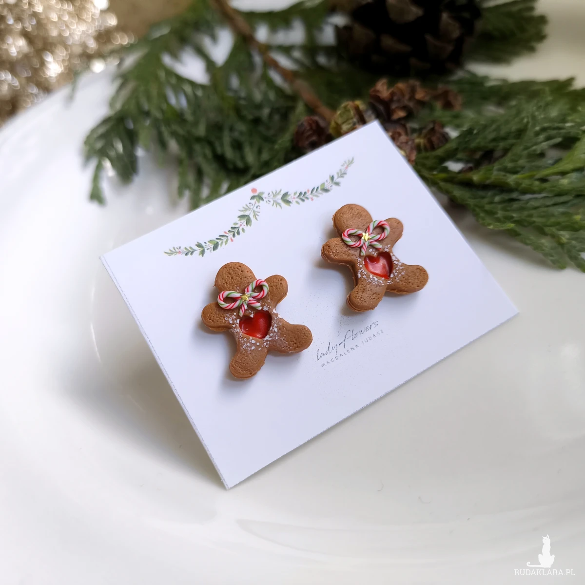 Urocze, świąteczne kolczyki z pierniczkowymi ludzikami.