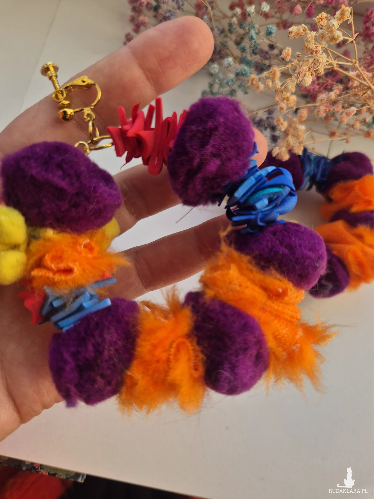 Klipsy szalone, duże i lekkie na bazie koła wykonana w pojedynczym egzemplarzu trzeba lubić takie szaleństwo na pewno zwracają uwagę,polecam