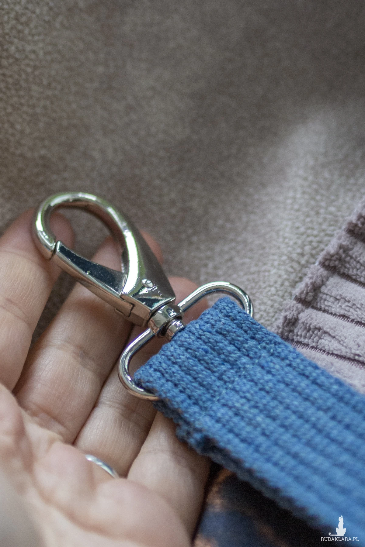 Bawełniana, wzorzysta podszewka. Torbę do wózka można zamocować dzięki specjalnym bawełnianym pasom zapinanym na karabińczyki.