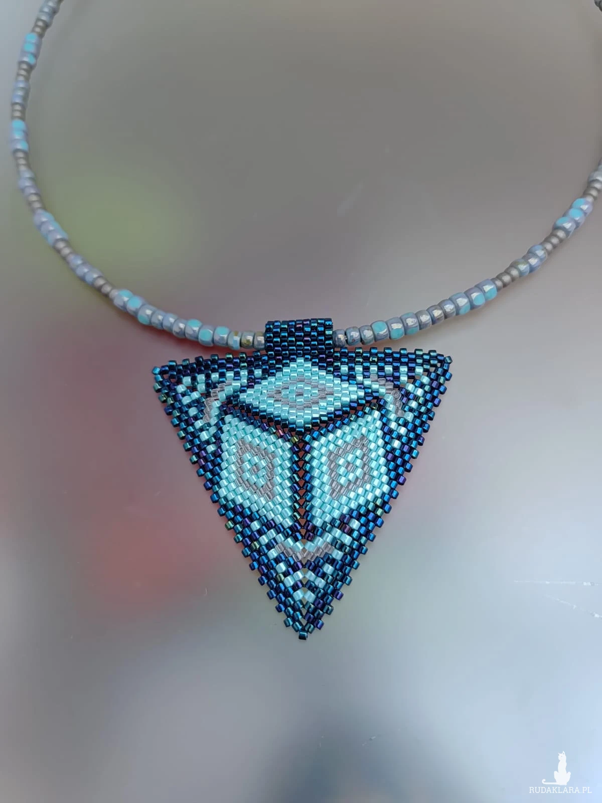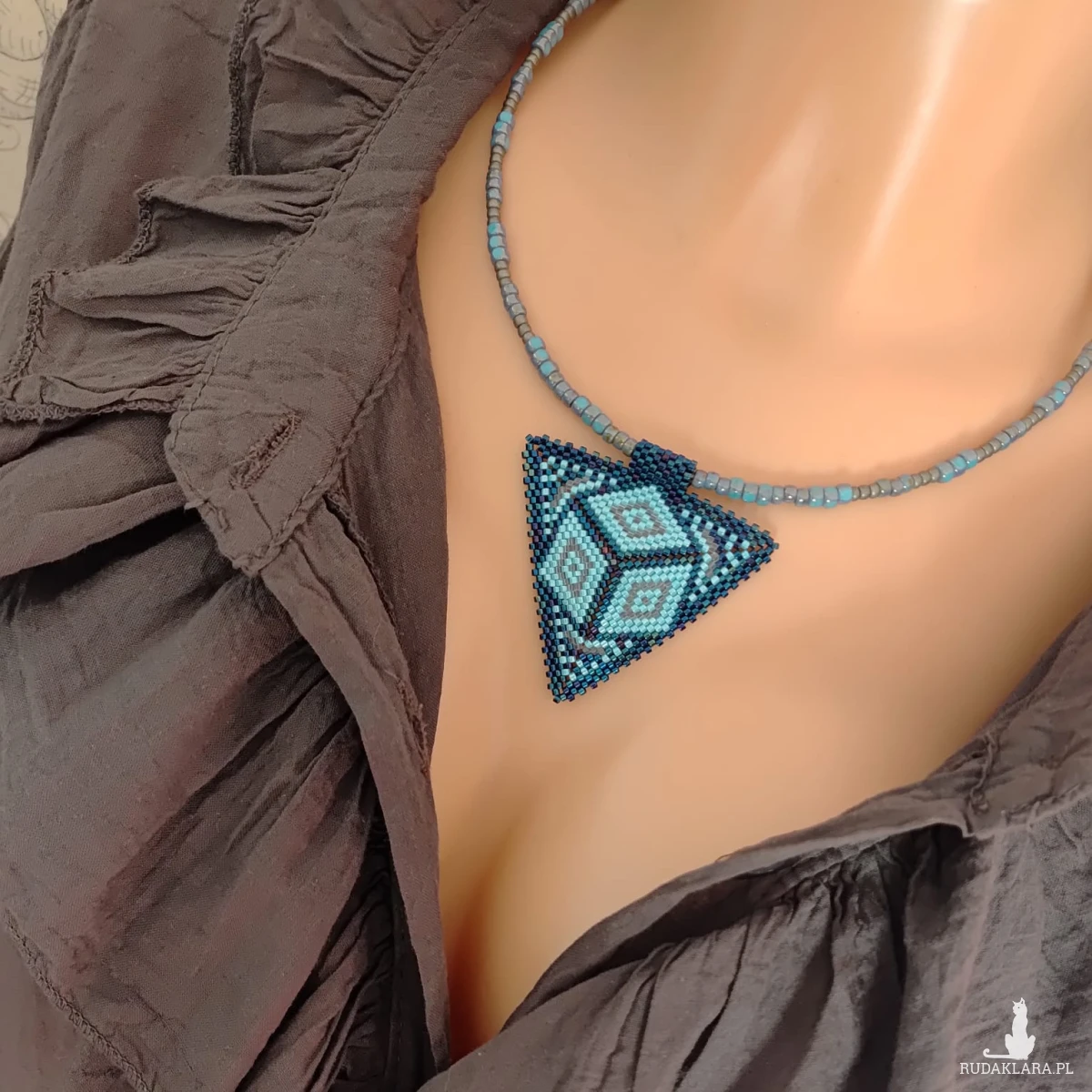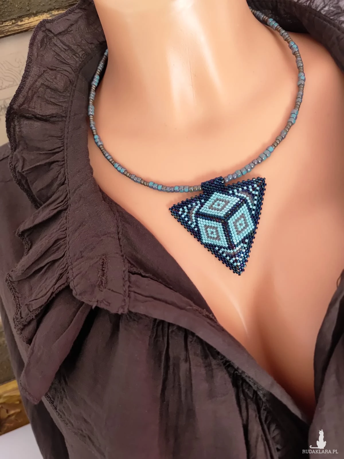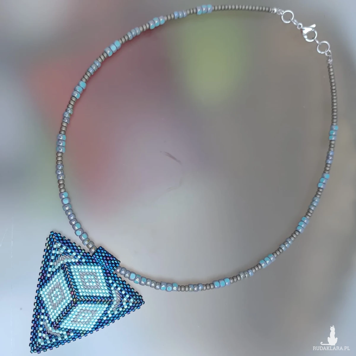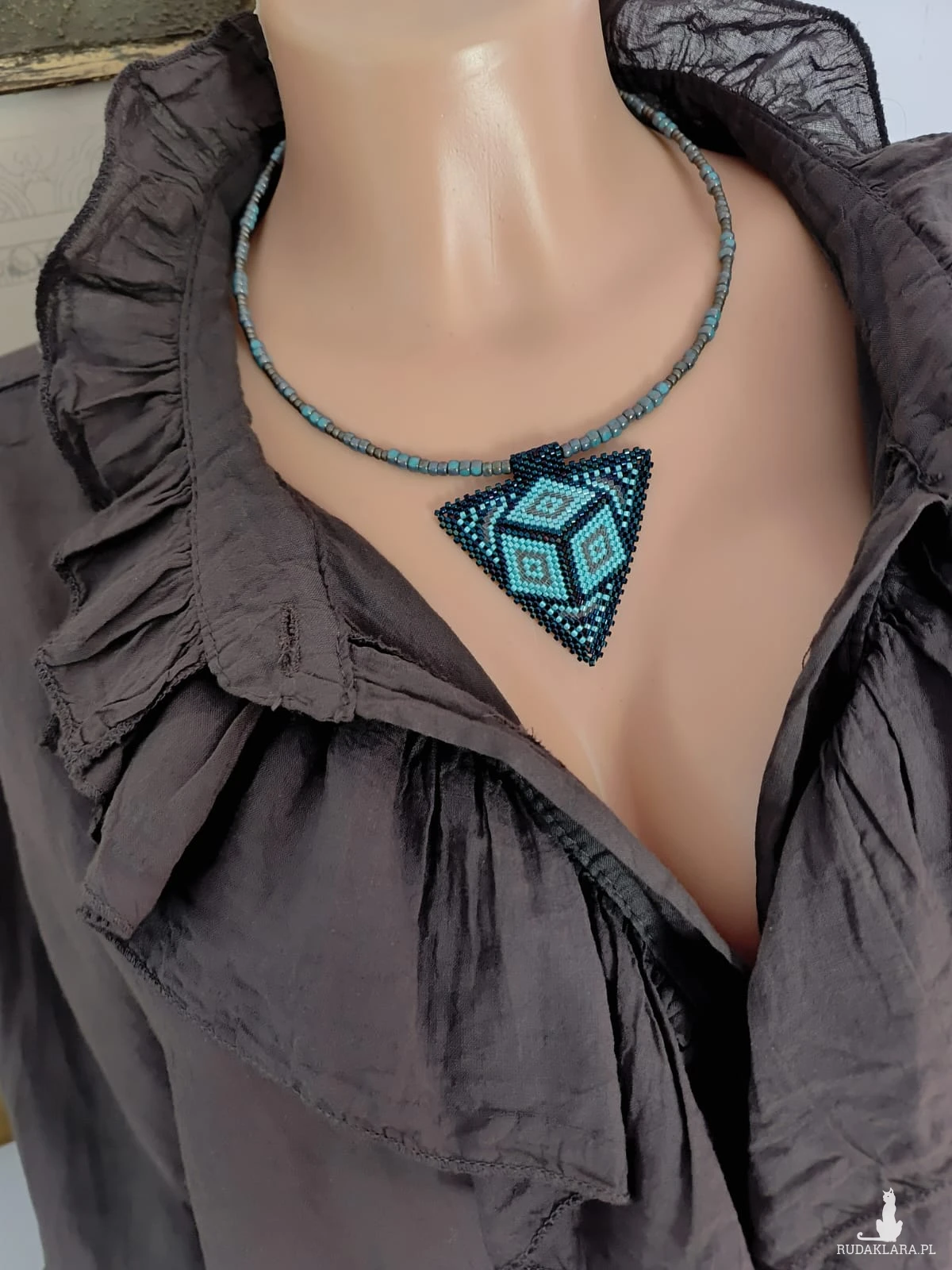 Naszyjnik krótki z koralików. Obróżka z wisiorkiem wyplecionym z