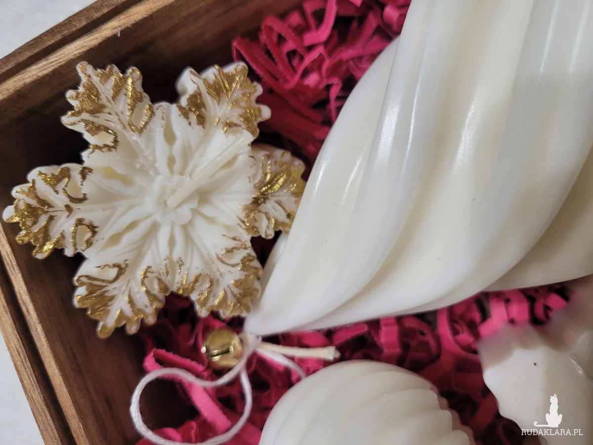 Zestaw  upominkowy ze świecami w skrzynce z drewna akacjowego
