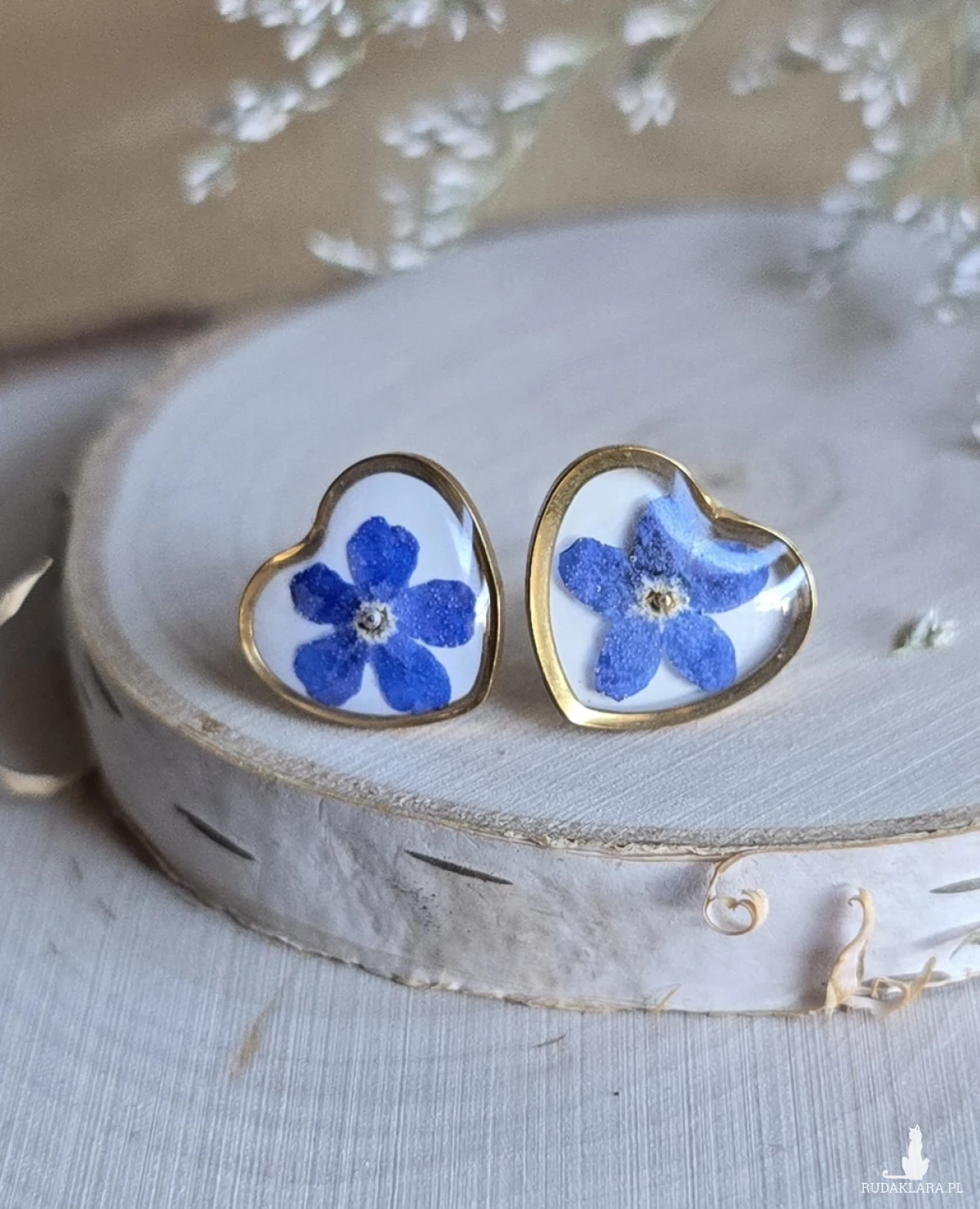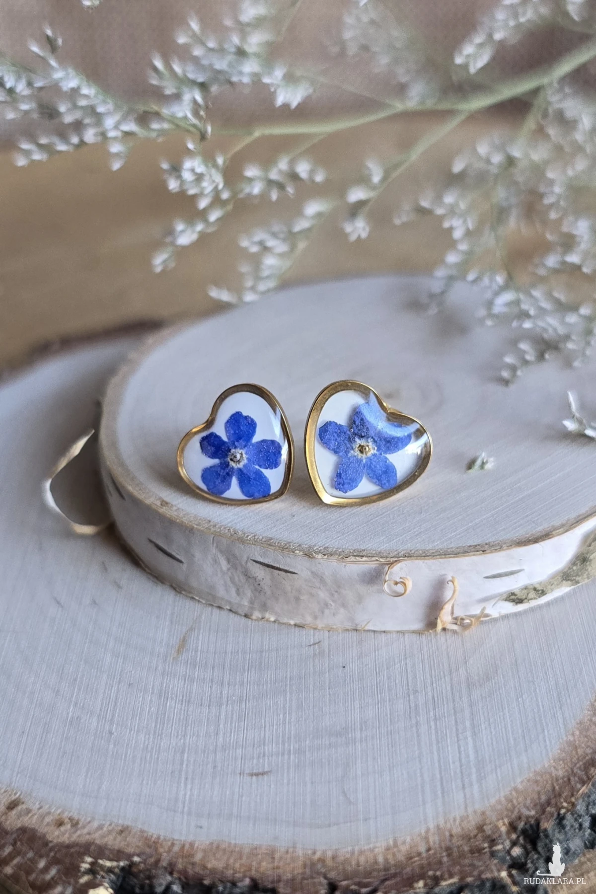 Oferuję Państwu unikalną biżuterię. Kolczyki są wykonane z suszonych kwiatów i żywicy epoksydowej. Biżuteria jest wspaniałym i oryginalnym prezentem na lata.