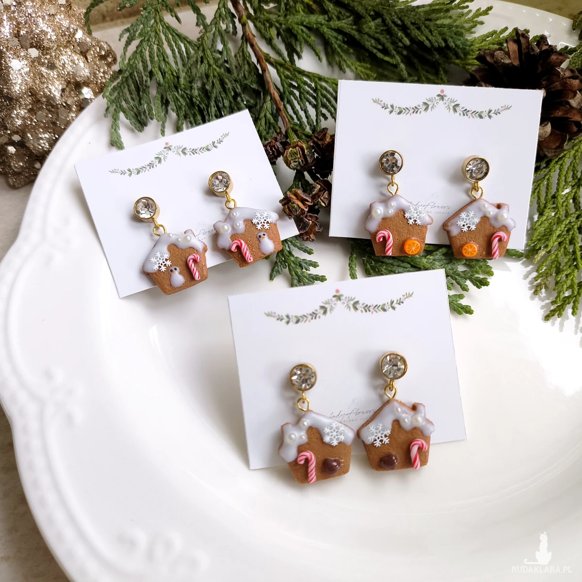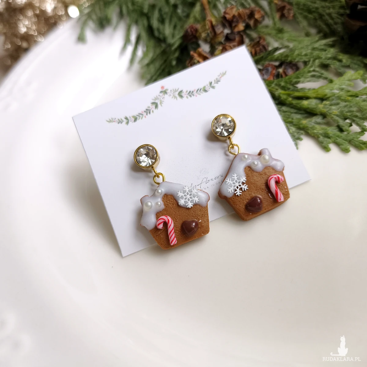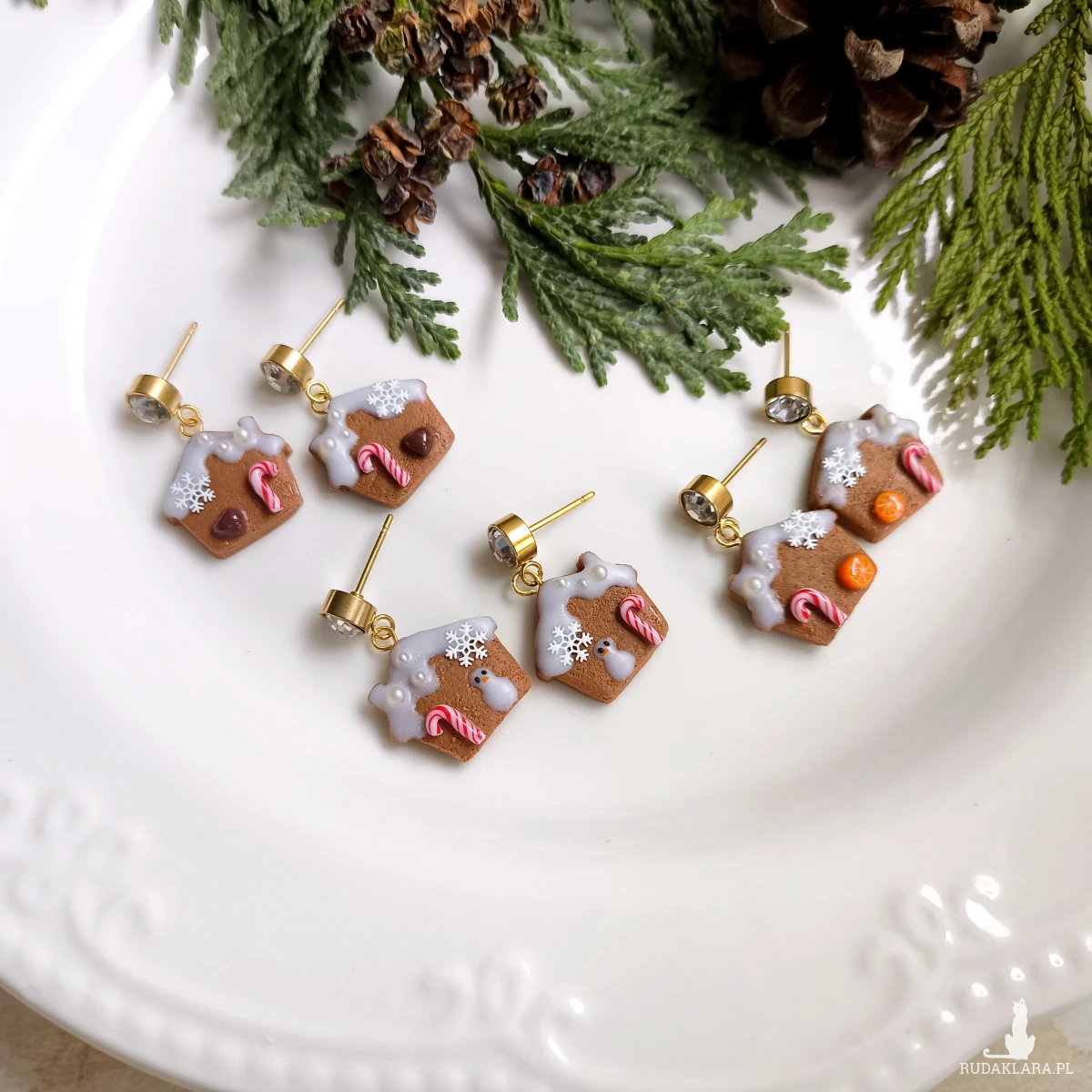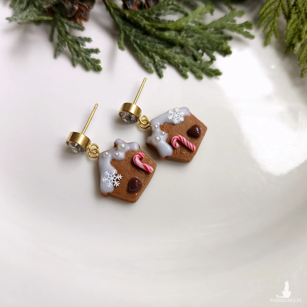 Urocze, świąteczne kolczyki piernikowe domki