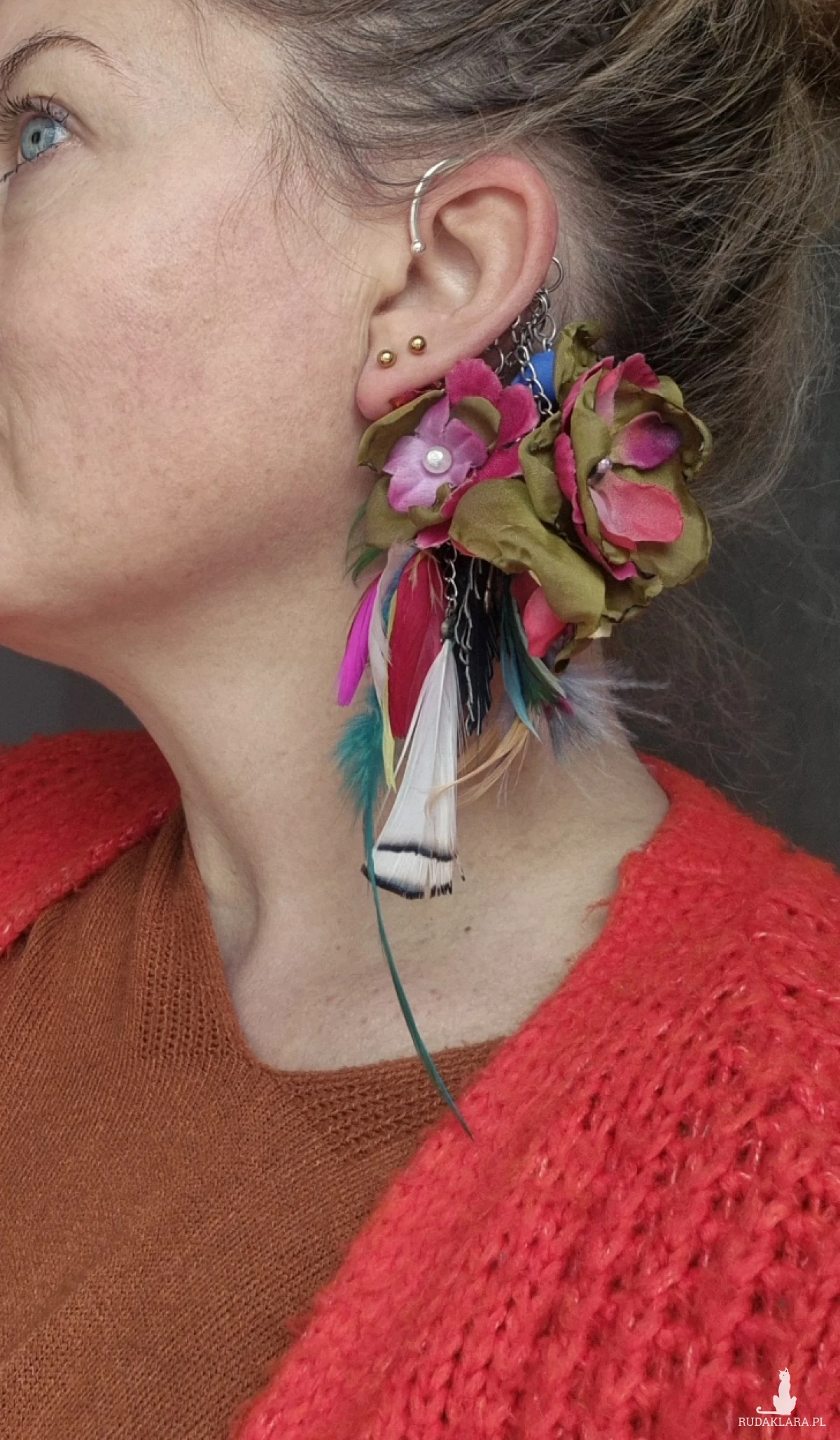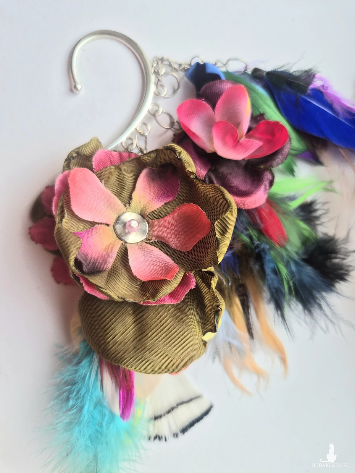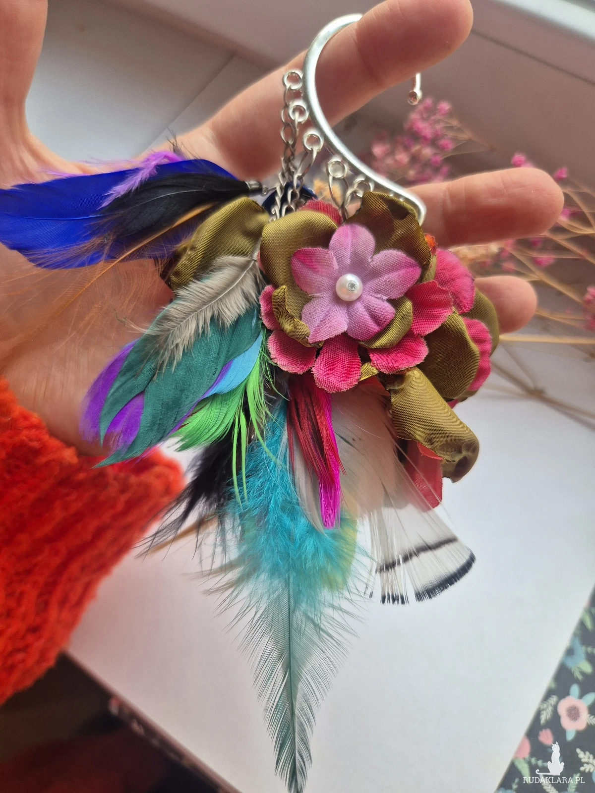 unikatowe kolczyki boho handmade   nausznica  piora kwiaty szaleństwo Folk - box  x1- nausznica w stylu boho na jedno ucho, polecam