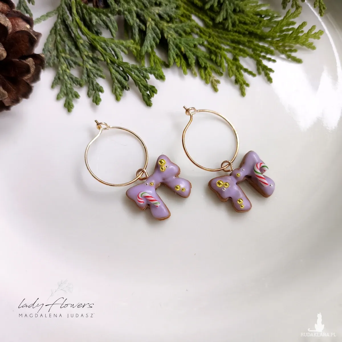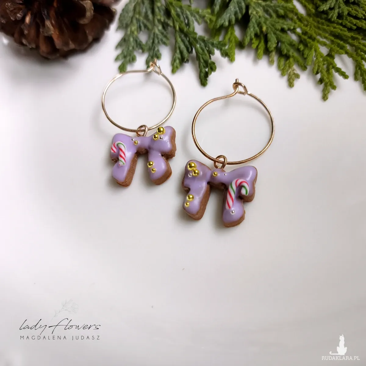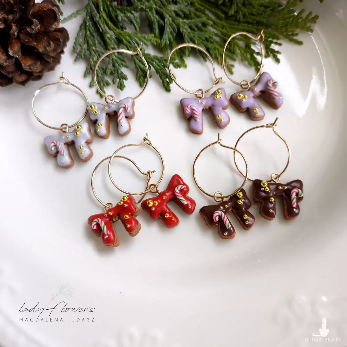 Urocze, świąteczne kolczyki z kokardkami.