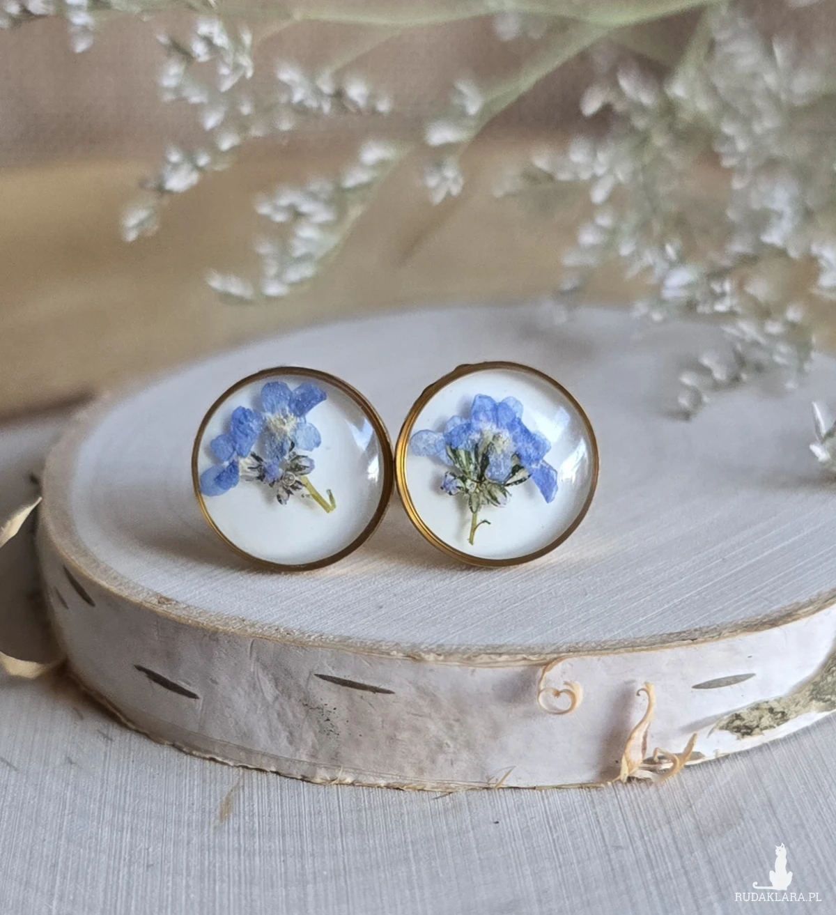 Oferuję Państwu unikalną biżuterię. Kolczyki są wykonane z suszonych kwiatów i żywicy epoksydowej. Biżuteria jest wspaniałym i oryginalnym prezentem na lata.