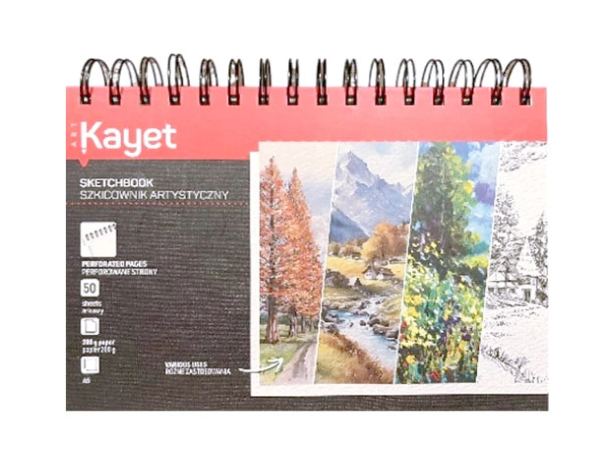 Praktyczny szkicownik, idealny zwłaszcza do markerów akwarelowych, lecz sprawdzi się także w technice farb akwarelowych, sepii, ołówka, cienkopisów. Zawiera 50 arkuszy, grubszy papier, lekko kremowy o gramaturze 200 gsm, format A5 (14,8 x 21 cm).