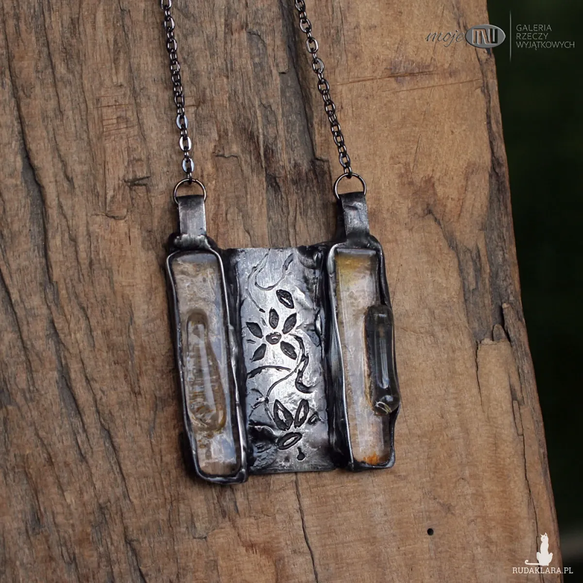 Wisior zawieszony jest na łańcuszku w kolorze grafitowym.