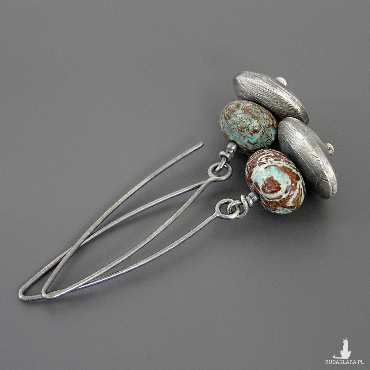 Surowe kolczyki, jaspis oceaniczny, srebro 925