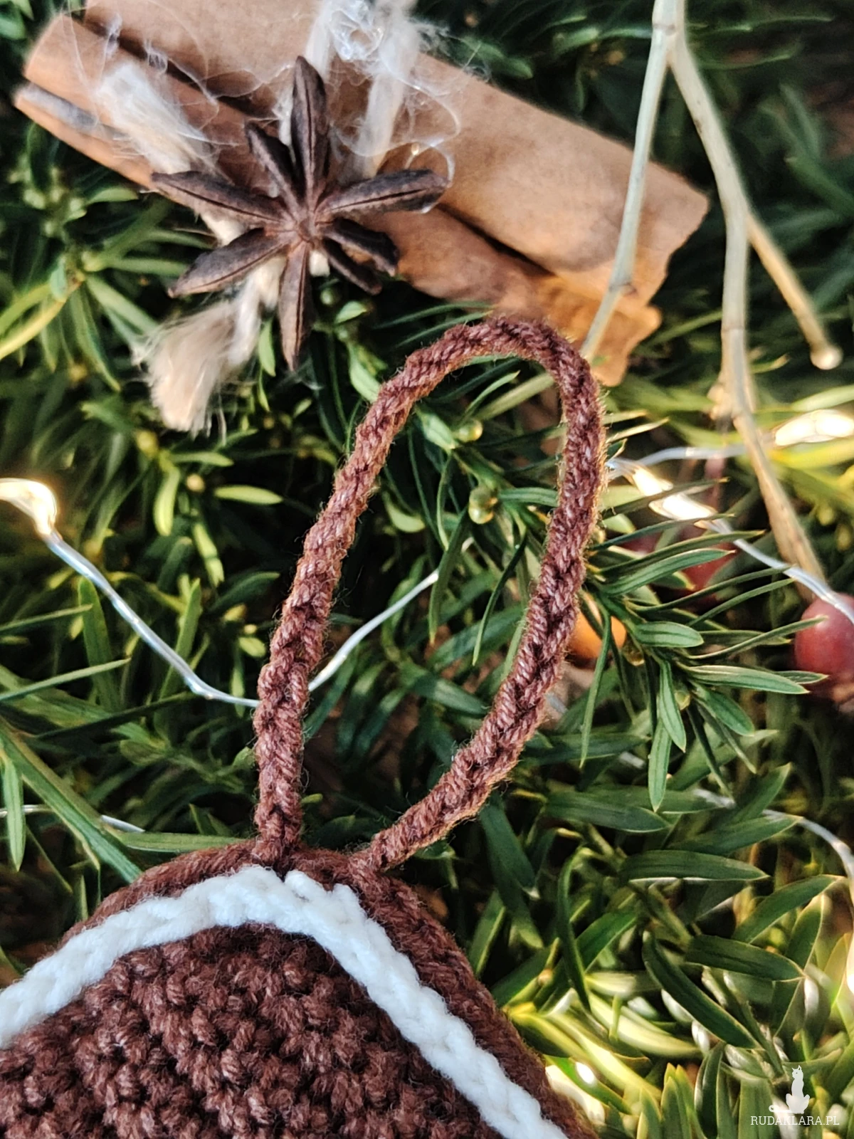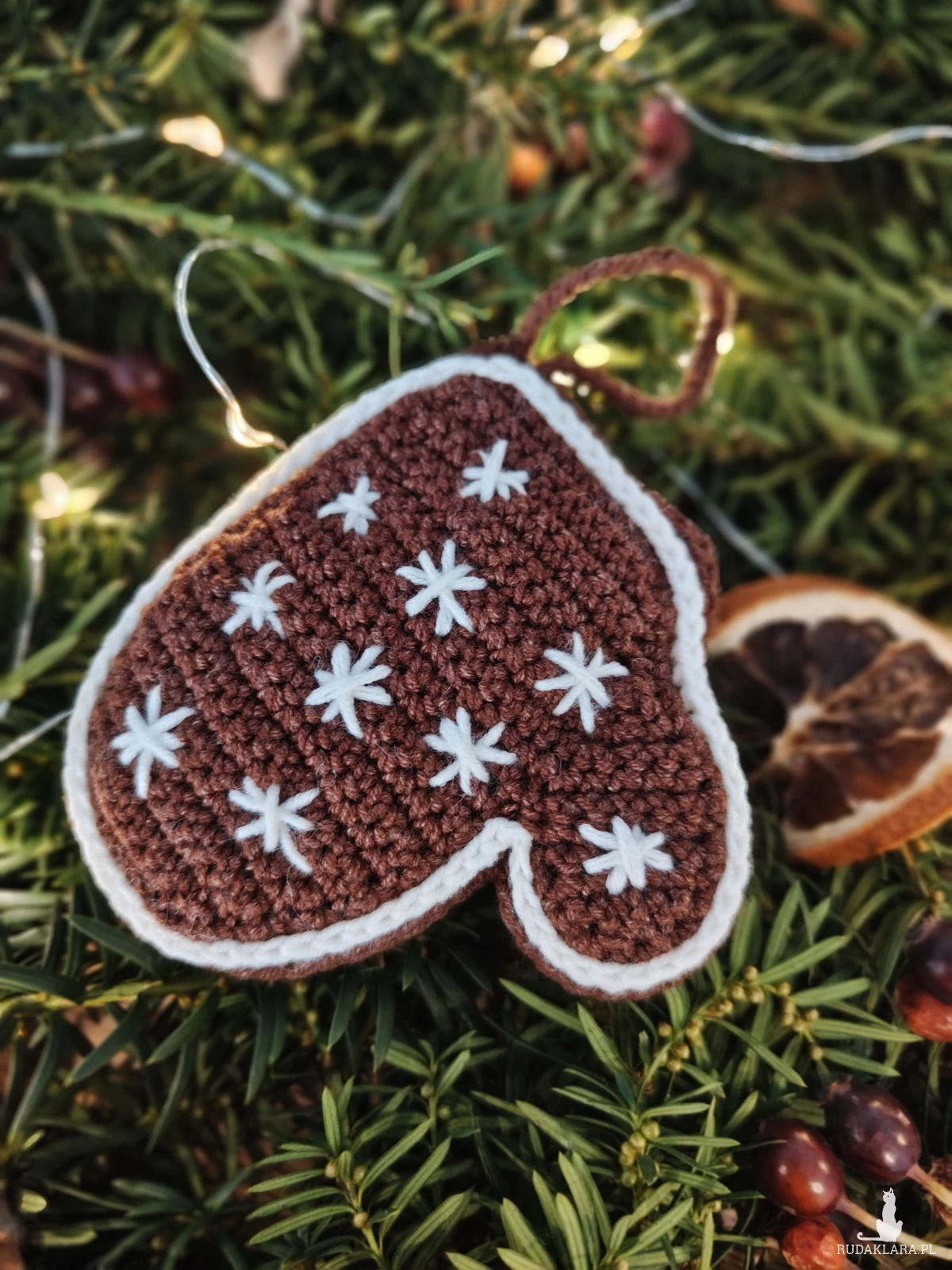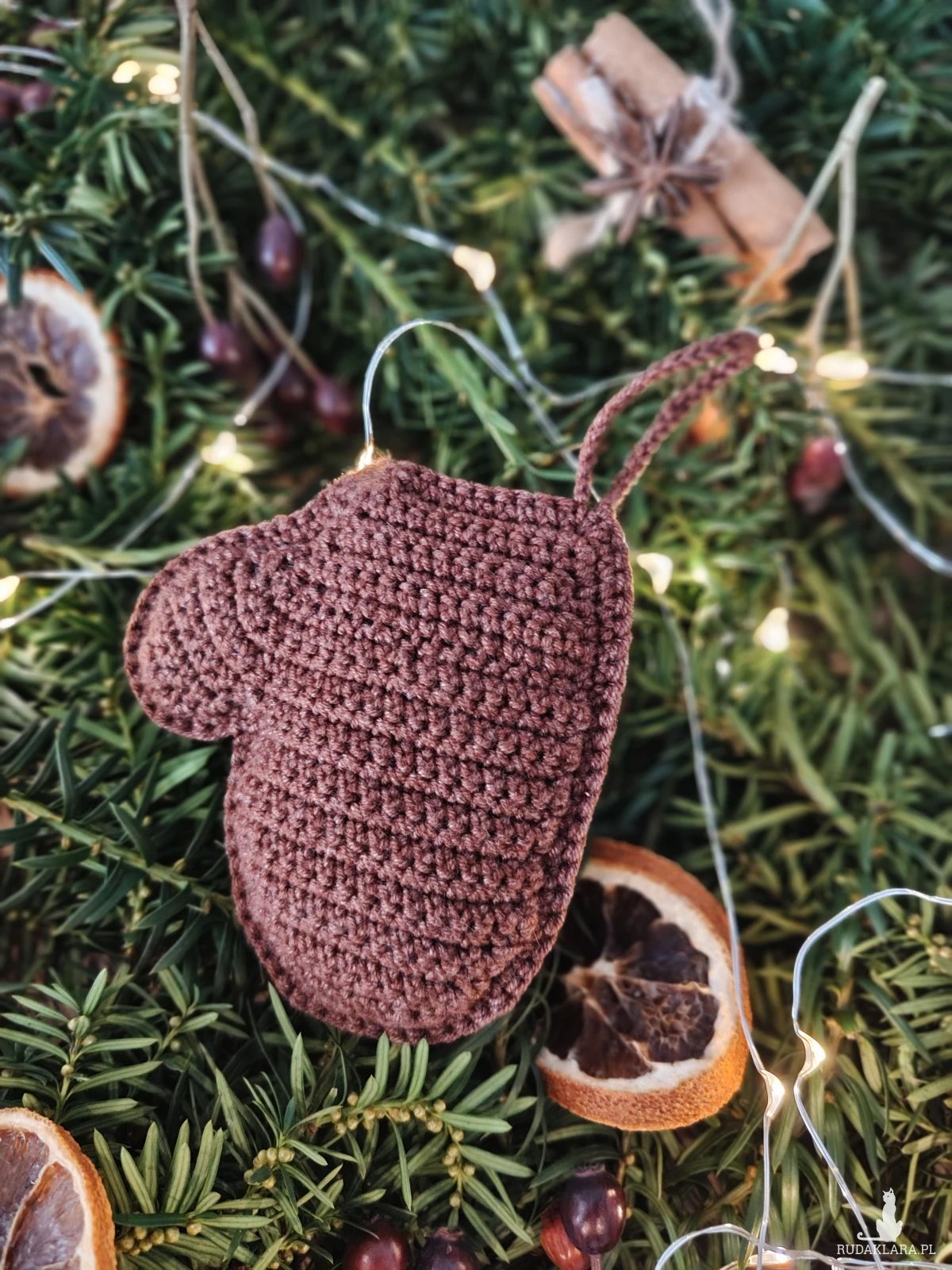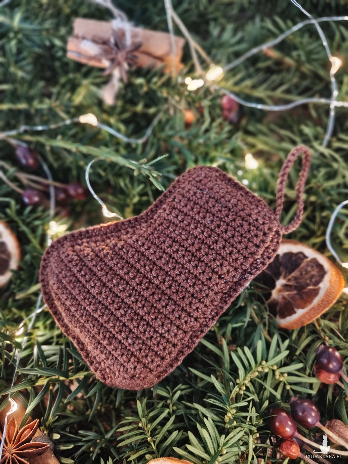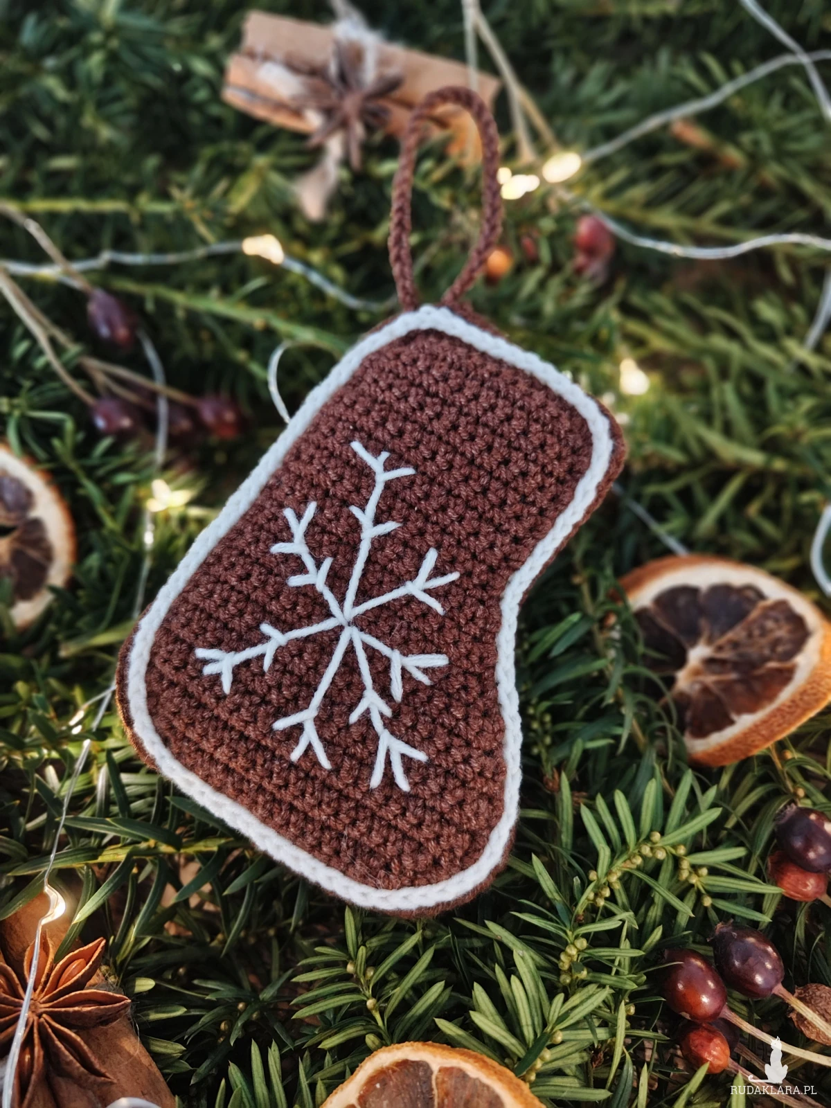 Dwa szydełkowe pierniczki w kształcie skarpety i rękawicy Mikołaja to wyjątkowe ozdoby Twojej choinki lub nietuzinkowy świąteczny prezent i pamiątka na lata.