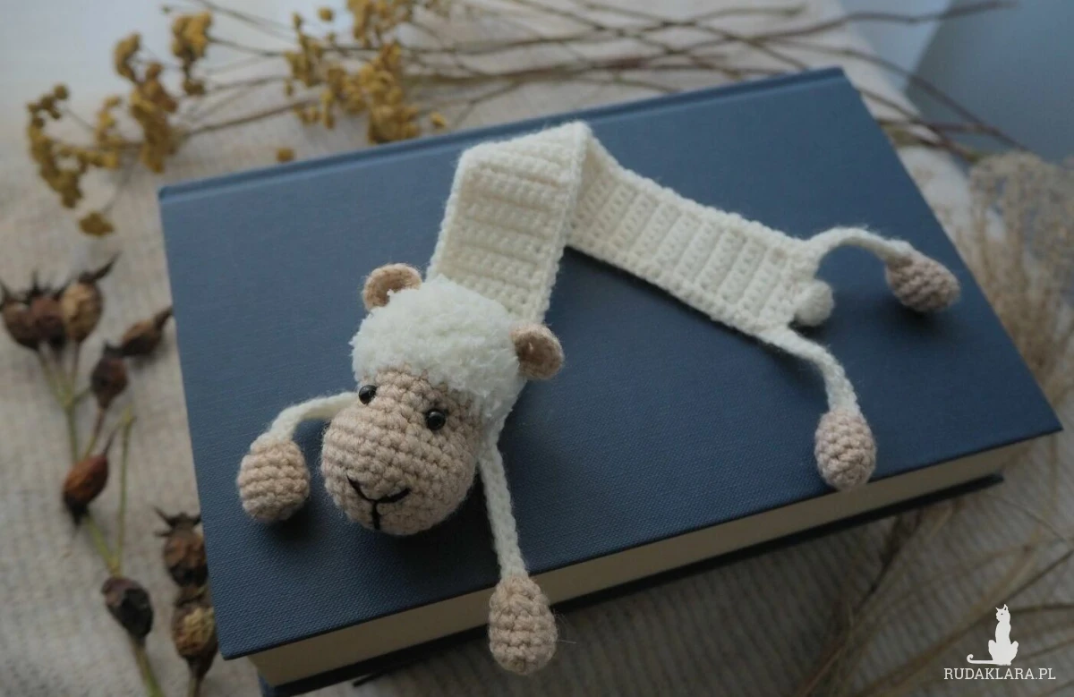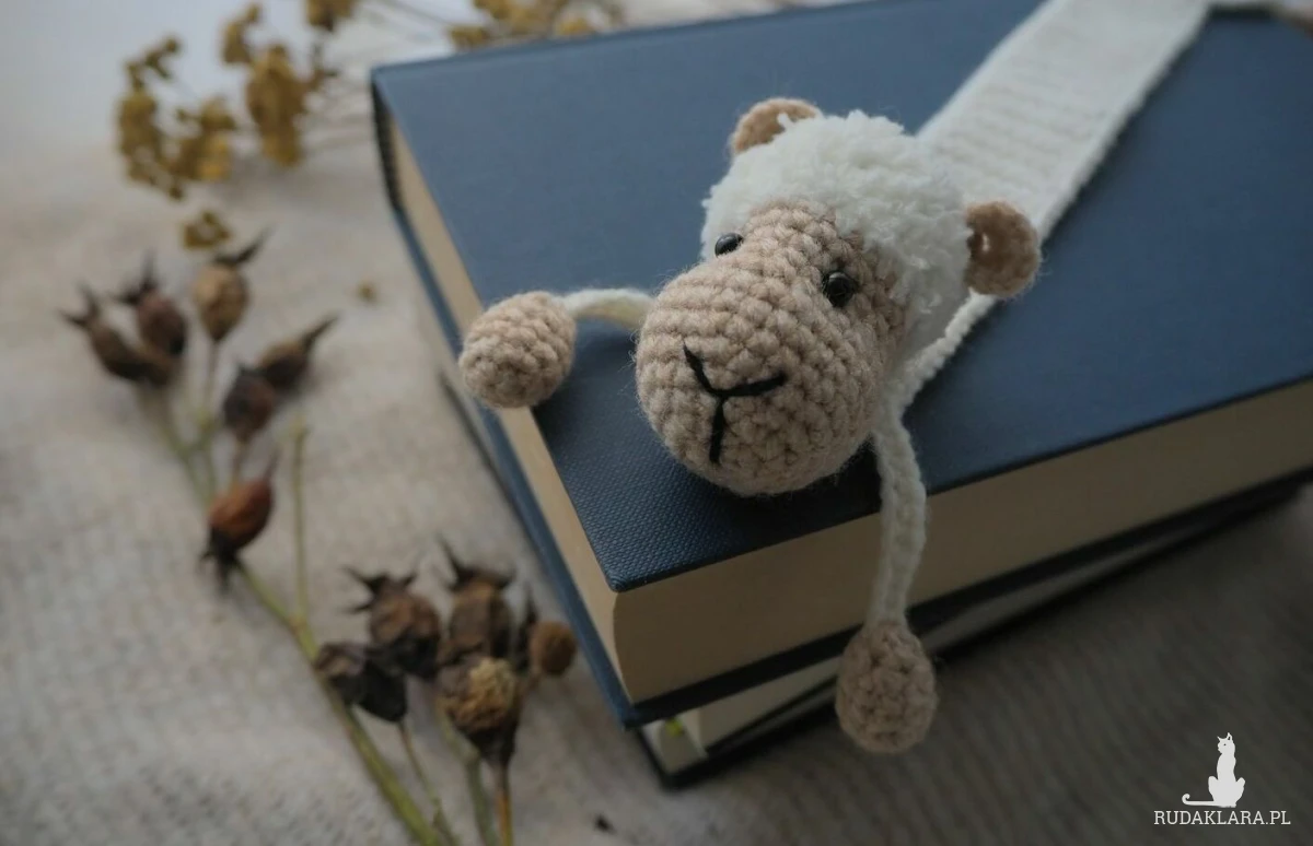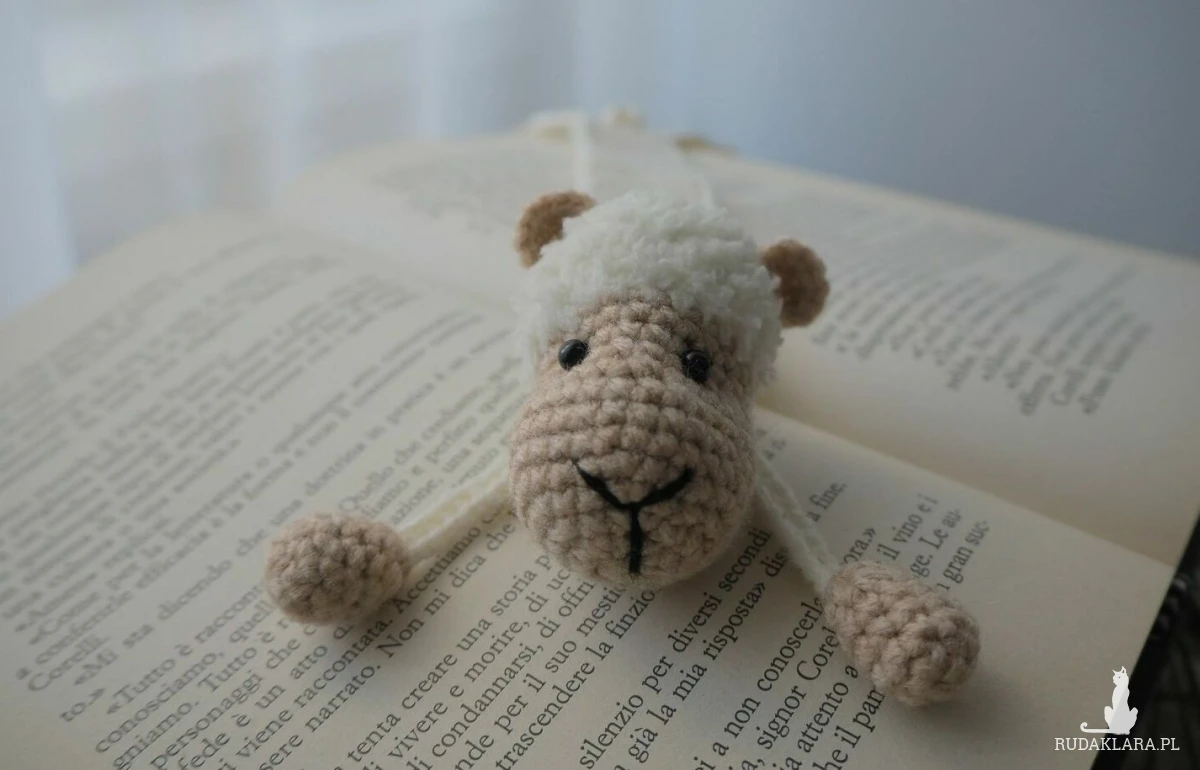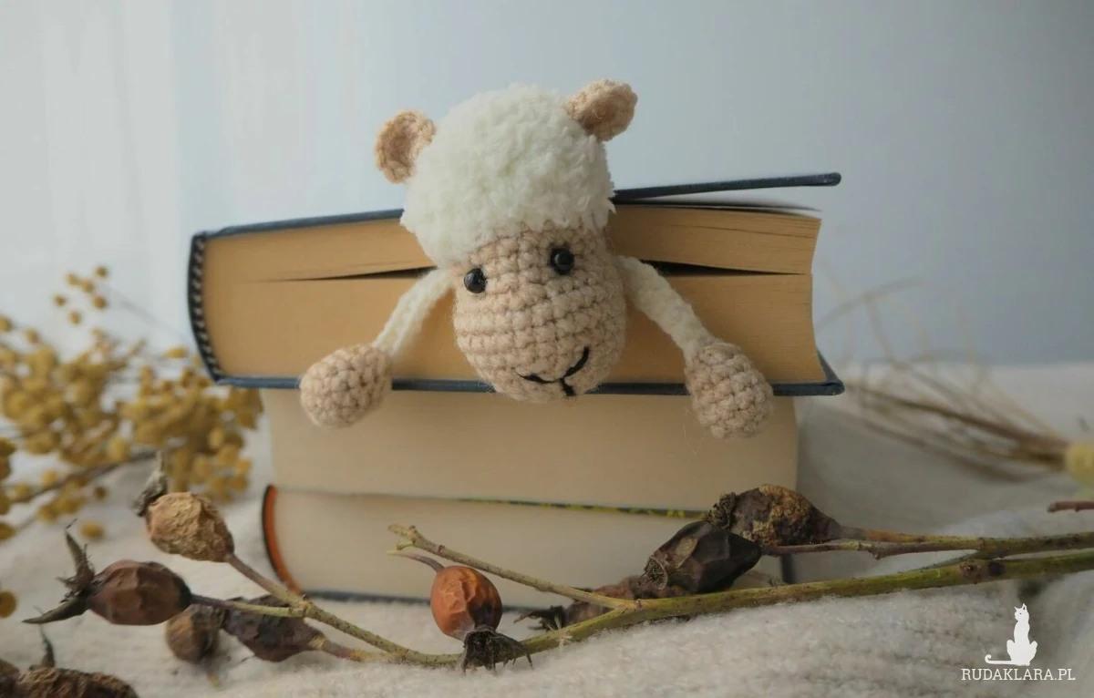 Zakładka do książki z sympatyczną owieczką wykonana z włóczki na szydełku.