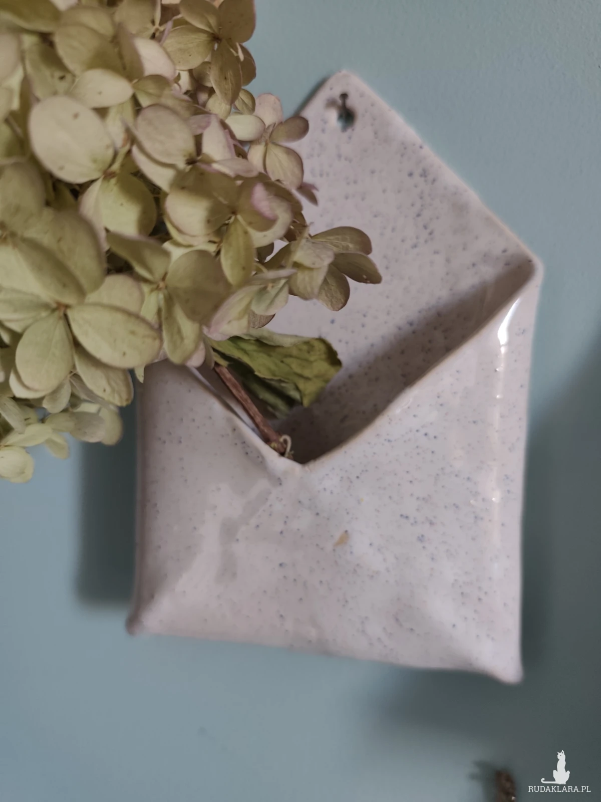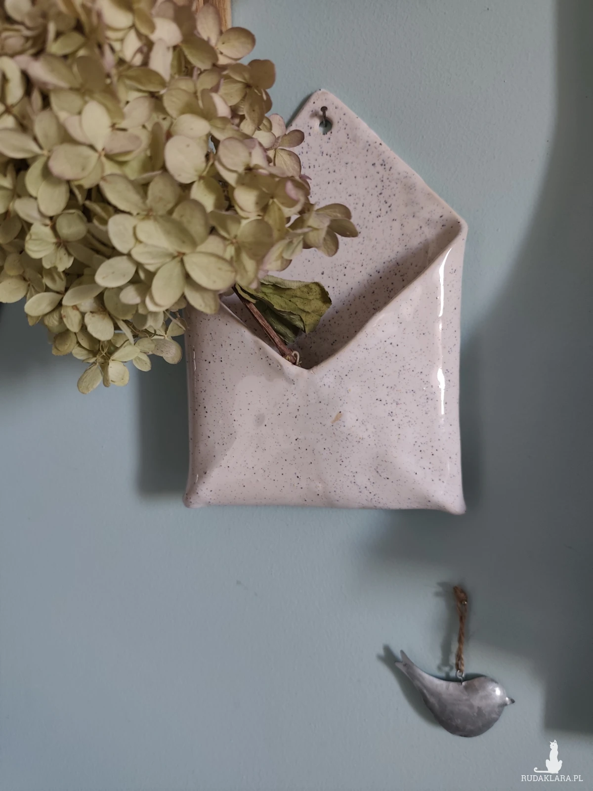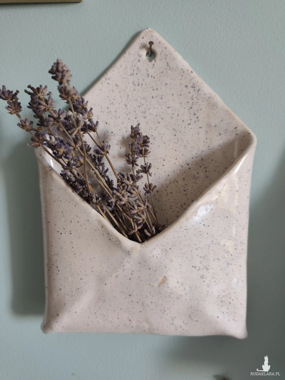 Ceramiczna koperta na drobiazgi, szkliwiona i dwukrotnie wypalana w piecu ceramicznym na wysoką temperaturę. Wymiary 21x15 cm.