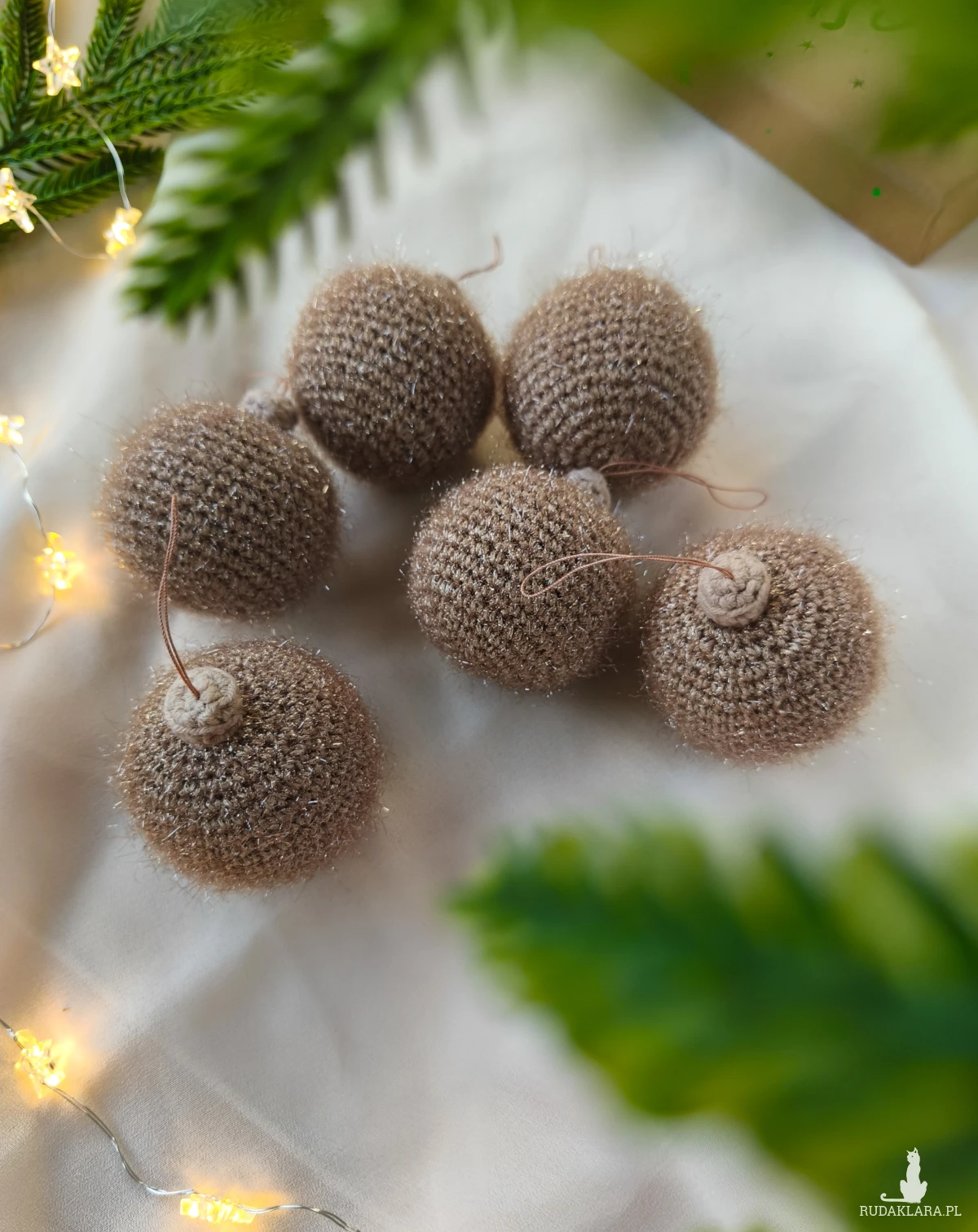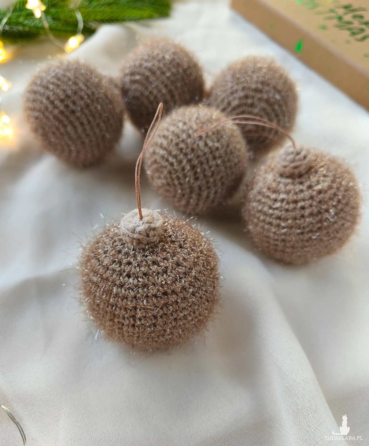 • Bombki szydełkowane są z wysokiej jakości włóczki poliestrowej błyszczącej i włochatej.
