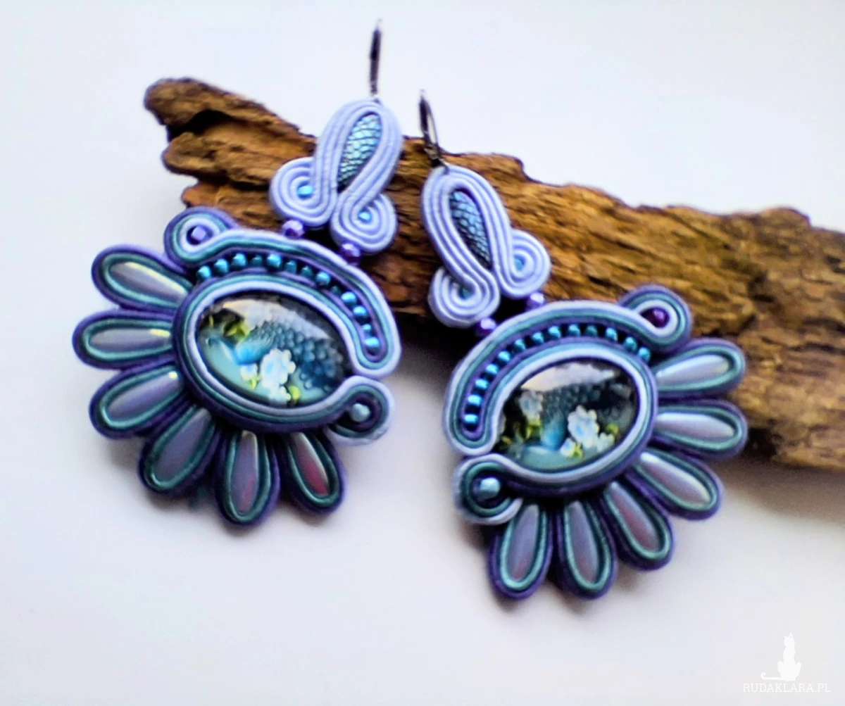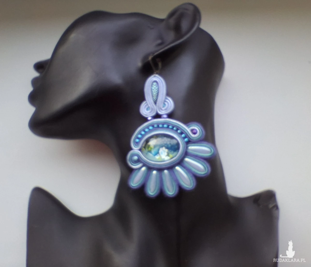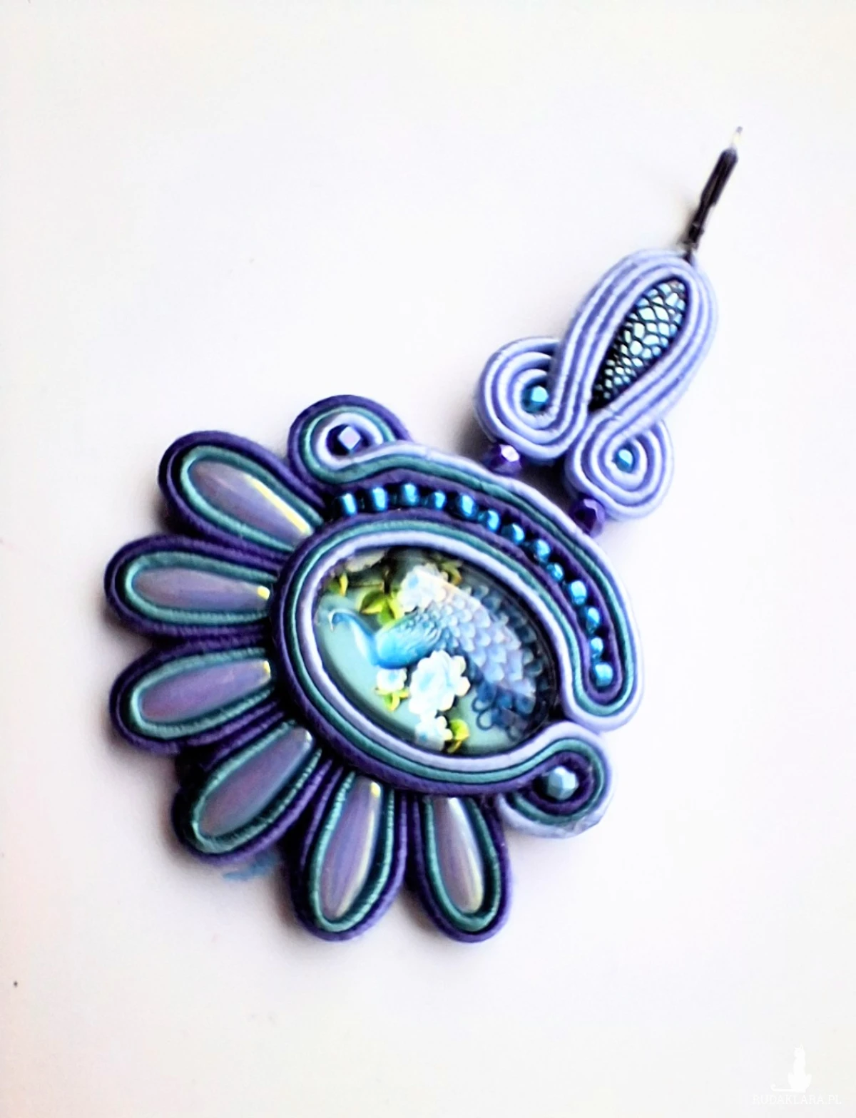 Materiał: sutasz, kaboszon z nadrukiem, japońskie koraliki Toho, Fire Polish, Czech Dagger