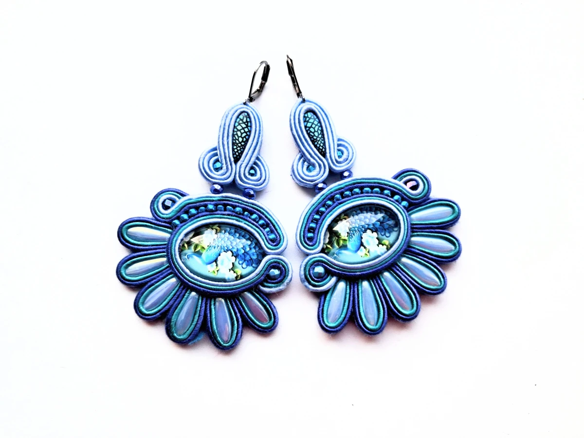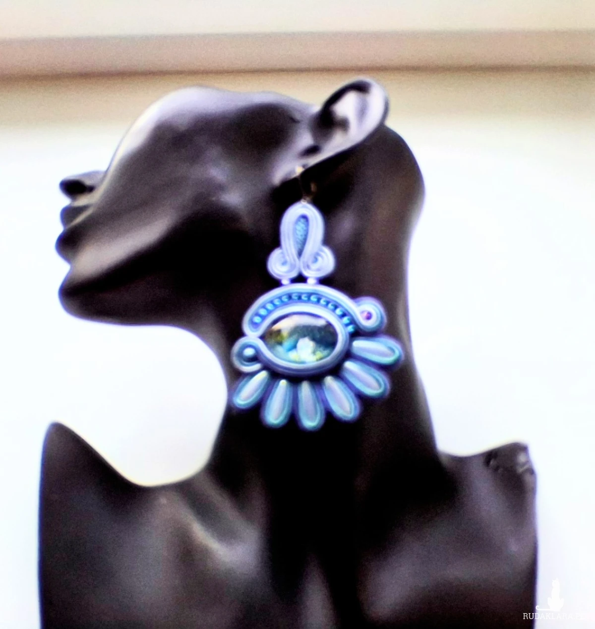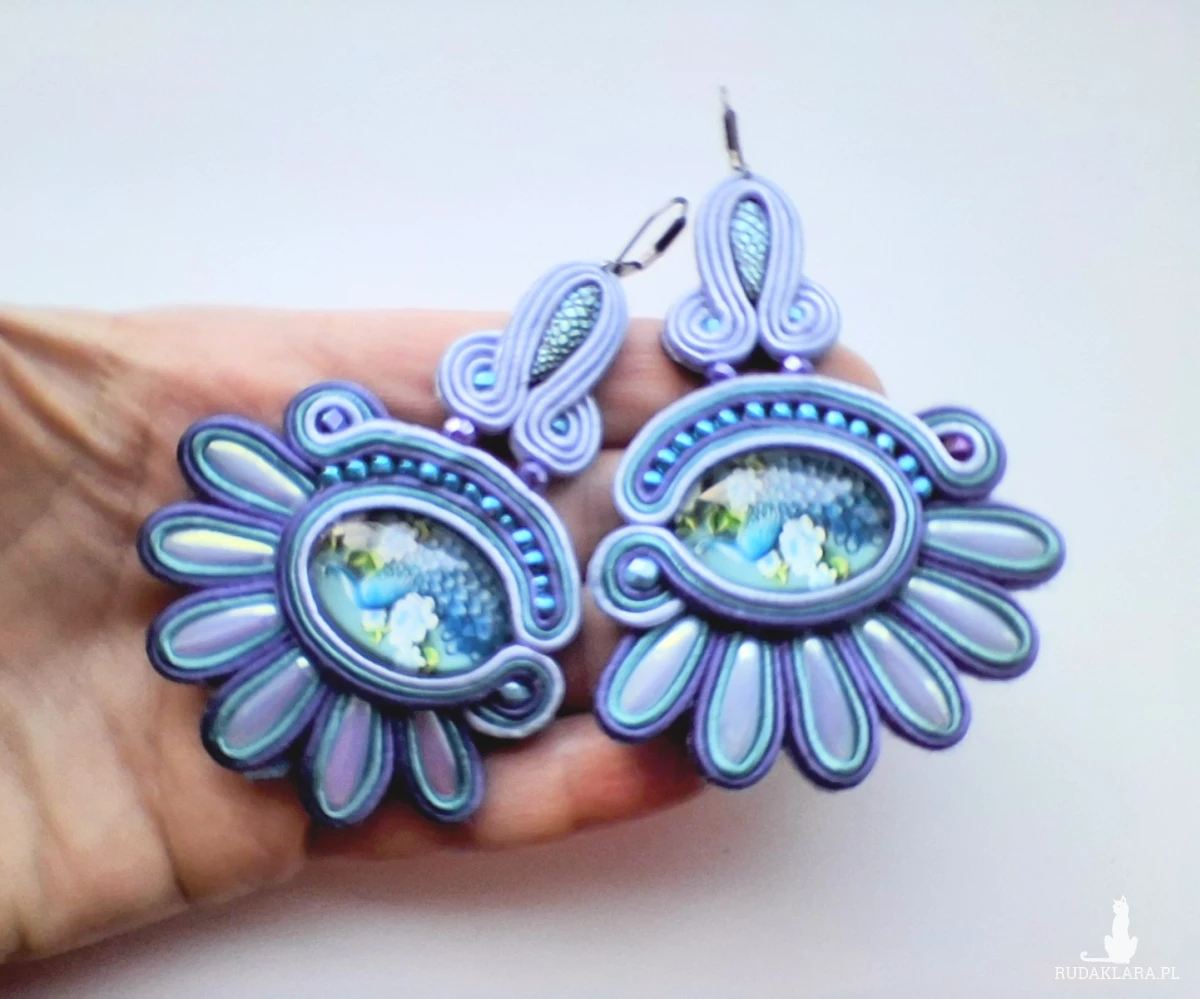Materiał: sutasz, kaboszon z nadrukiem, japońskie koraliki Toho, Fire Polish, Czech Dagger