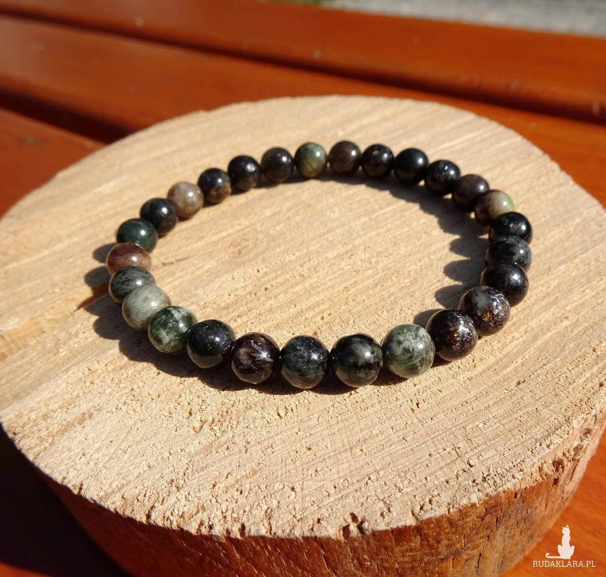 Bransoletka z gładkich kulek naturalnego flogopitu wielkości 6mm, na silikonowej gumce.