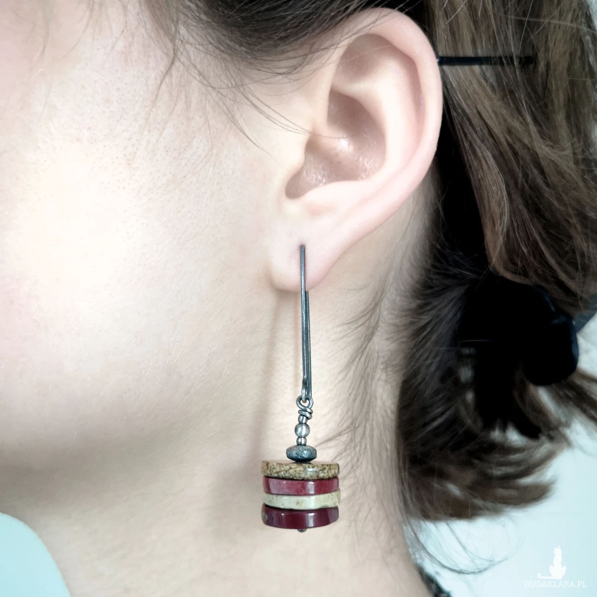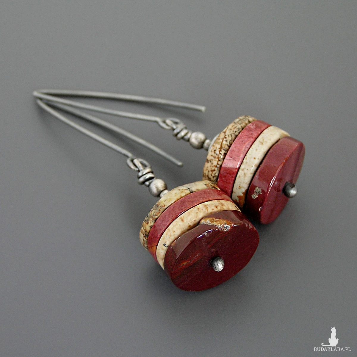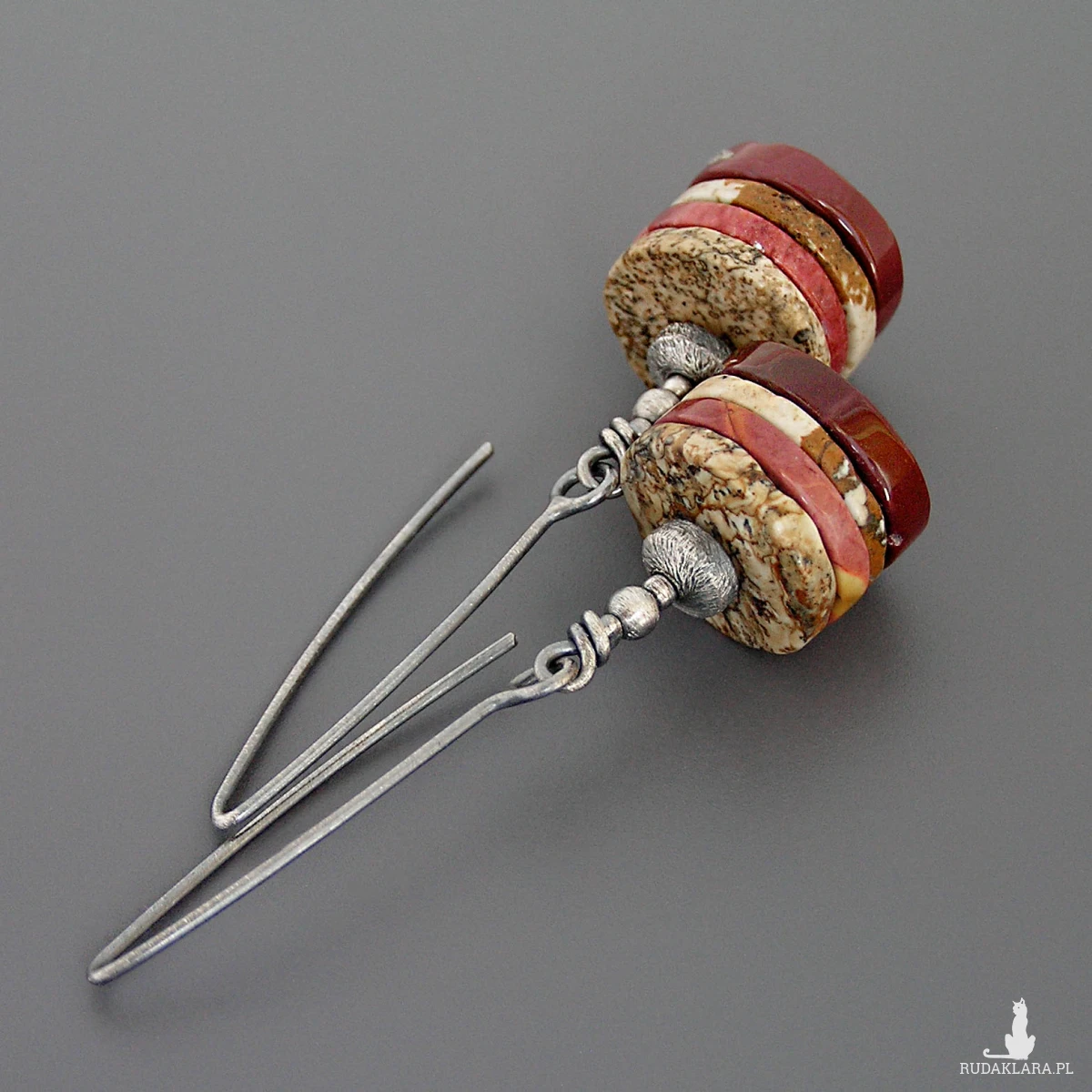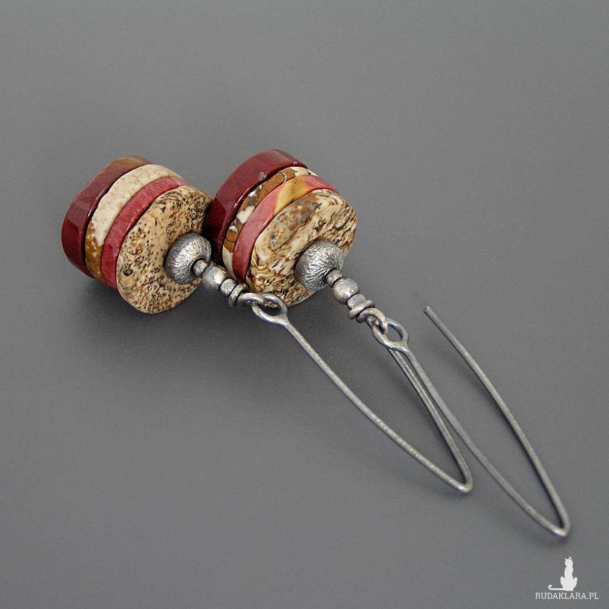 Surowe kolczyki, jaspis krajobrazowy, jaspis mokait, srebro 925