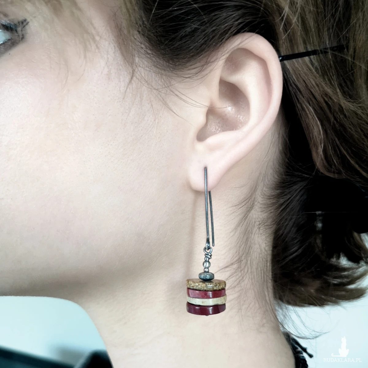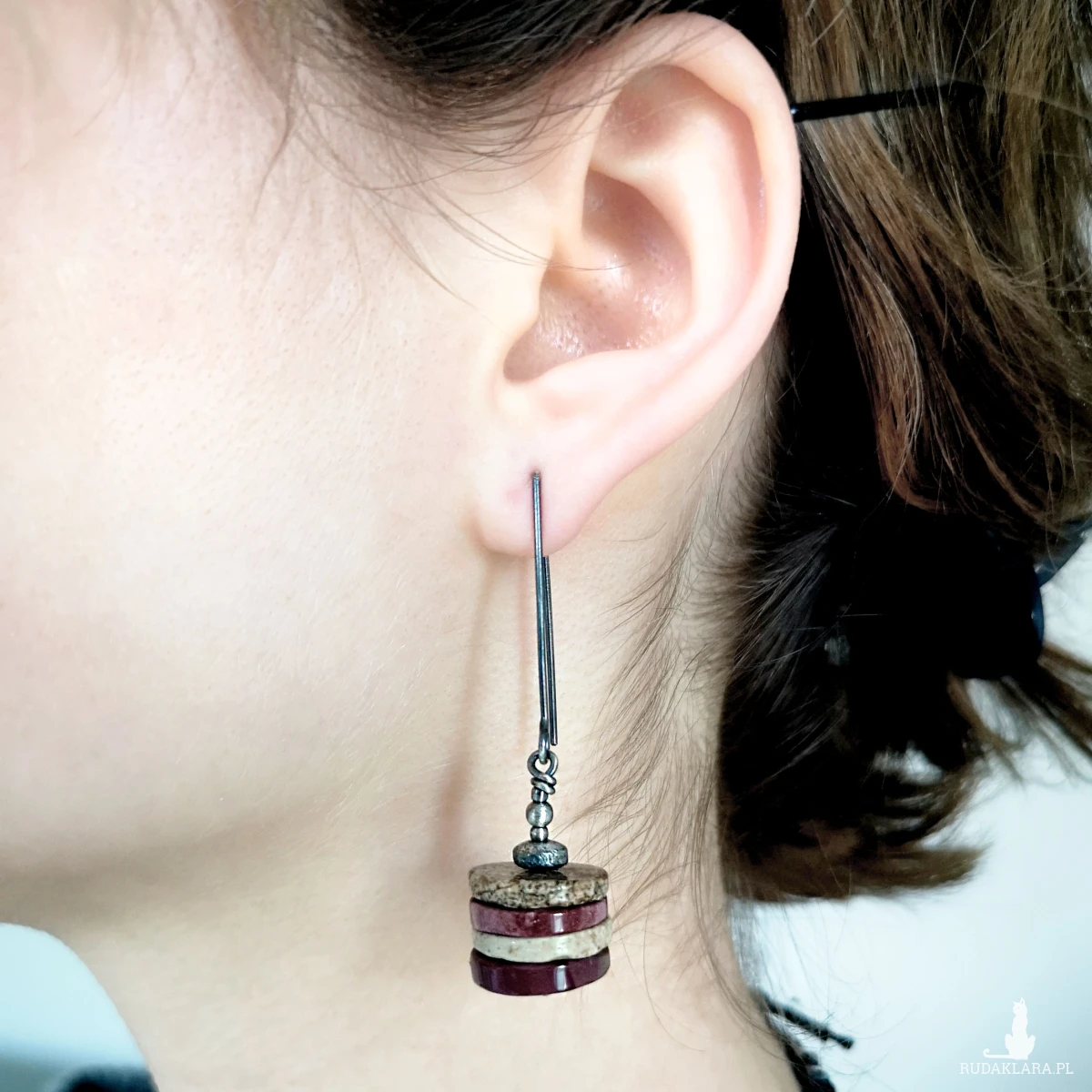 Kolczyki wykonane ze srebra próby 925, patynowane i szczotkowane.