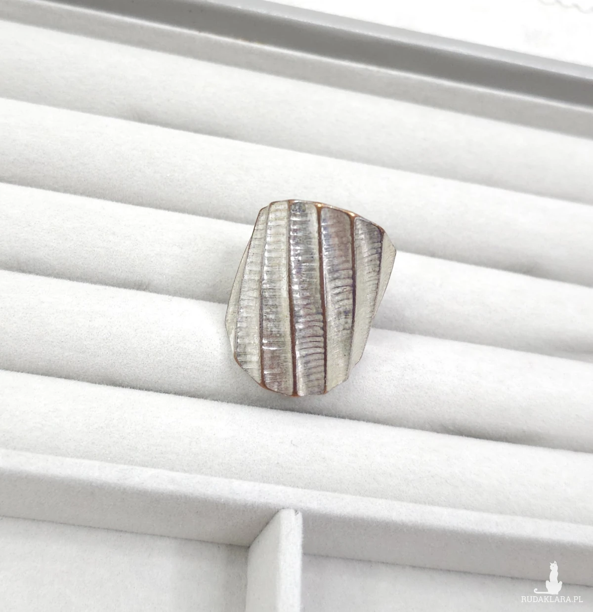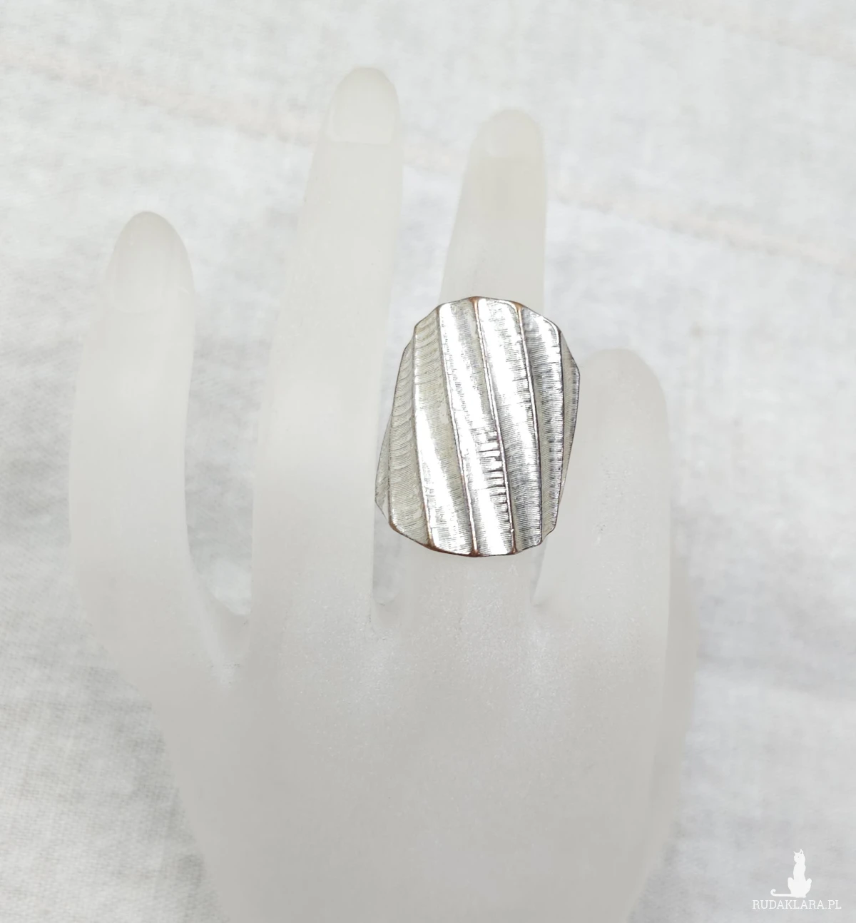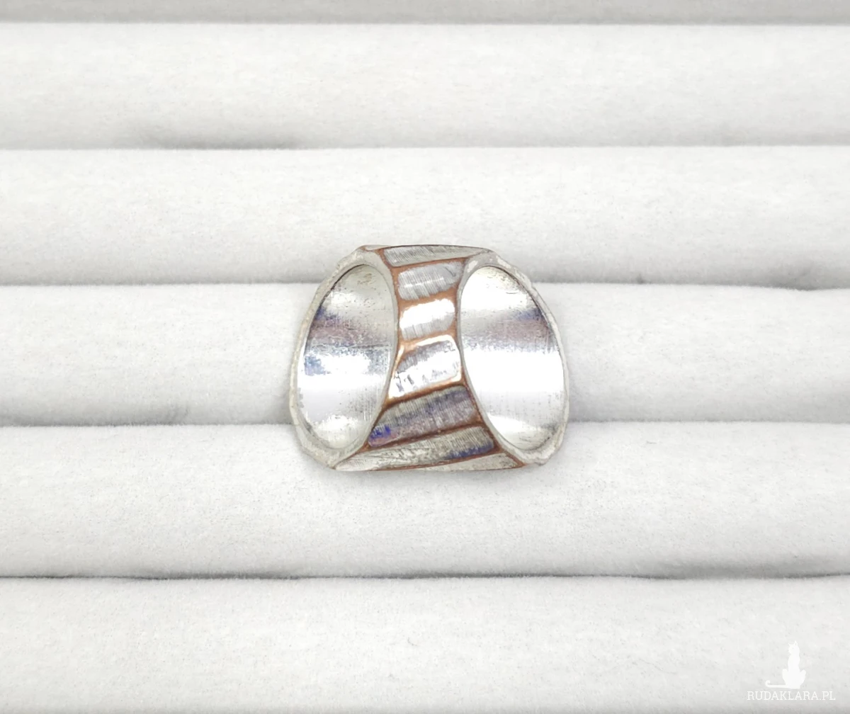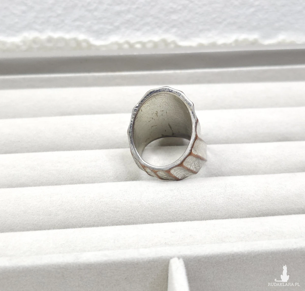 109 Duży Pierścionek Statement – Posrebrzany Mosiądz Teksturowany – Geometryczny Design Vintage (EU 14 / US 7)