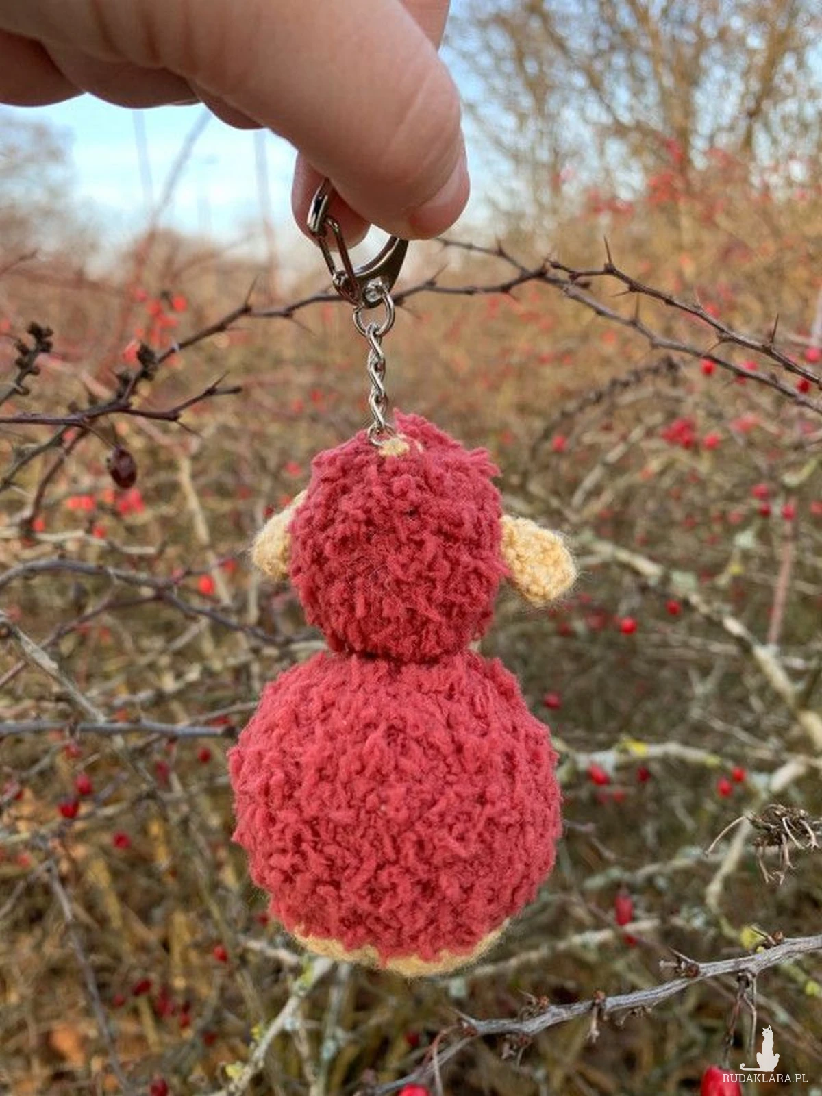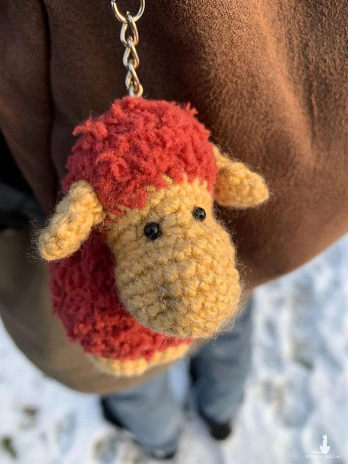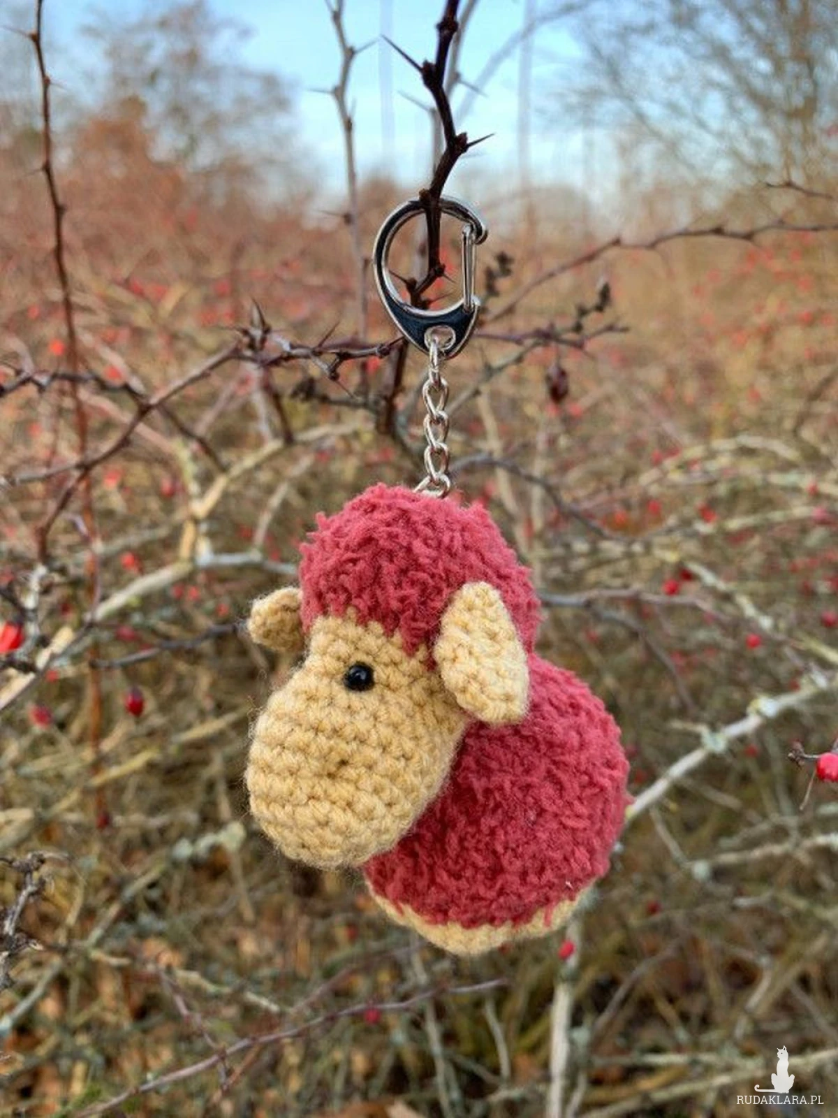 Sympatyczny brelok owieczka wykonany ręcznie z fantazyjnej włóczki na szydełku.