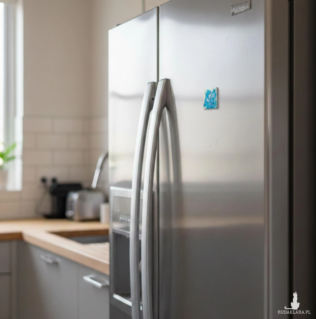 Ten magnes na lodówkę to mały, kwadratowy obraz, który mieści w sobie całą moc koloru i emocji.