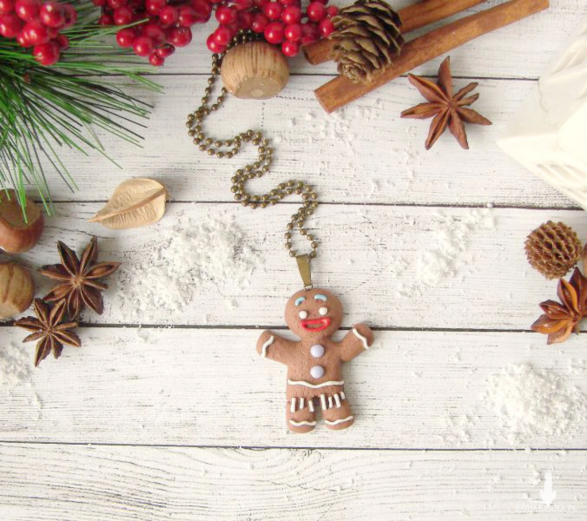 Słodki naszyjnik z dużym Panem Ciastkiem wykonanym ręcznie z masy fimo.