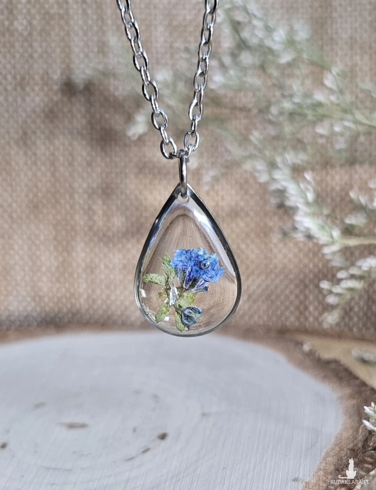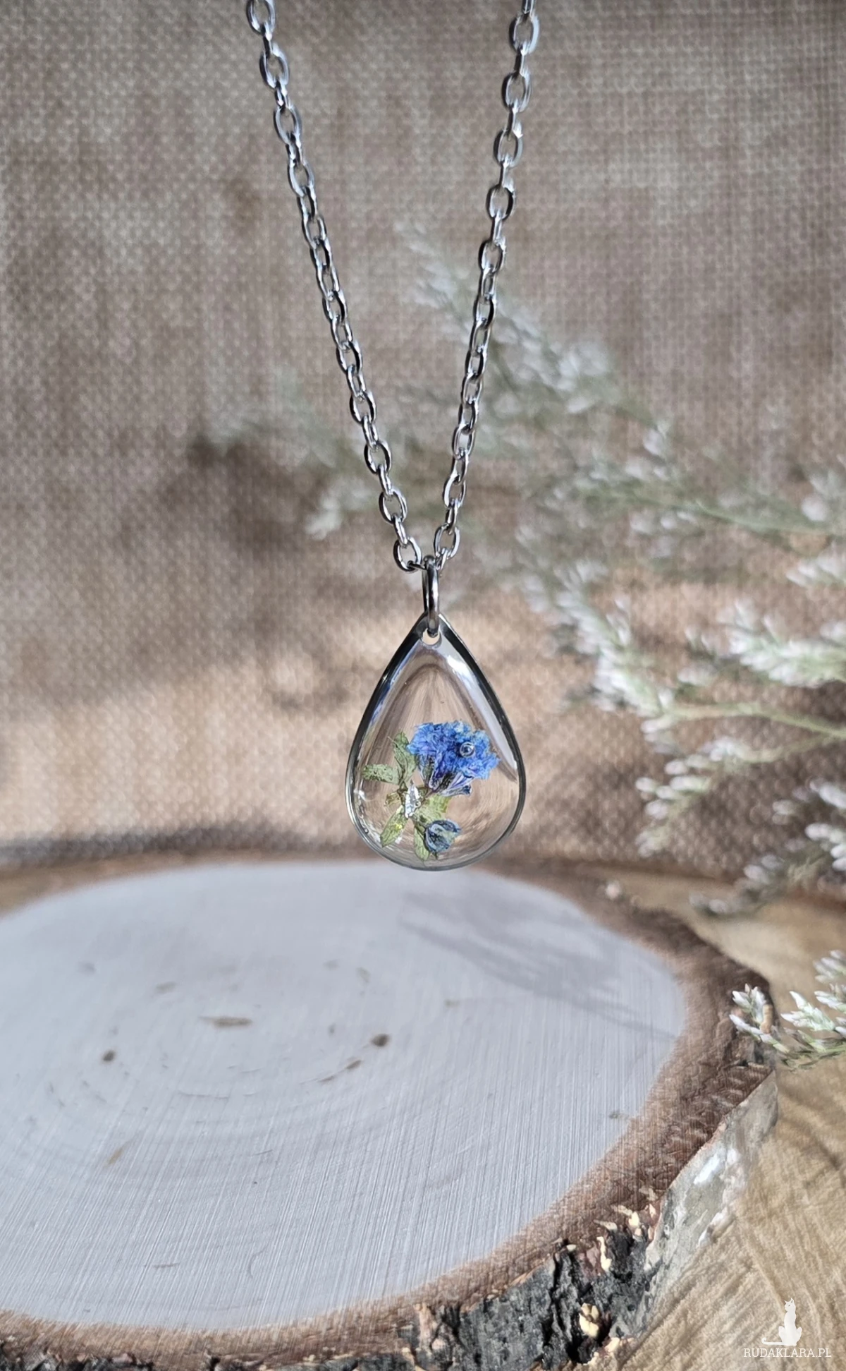 Oferuję Państwu unikalną biżuterię. Zawieszka jest wykonana z suszonych kwiatów i żywicy epoksydowej. Biżuteria jest wspaniałym i oryginalnym prezentem na lata.