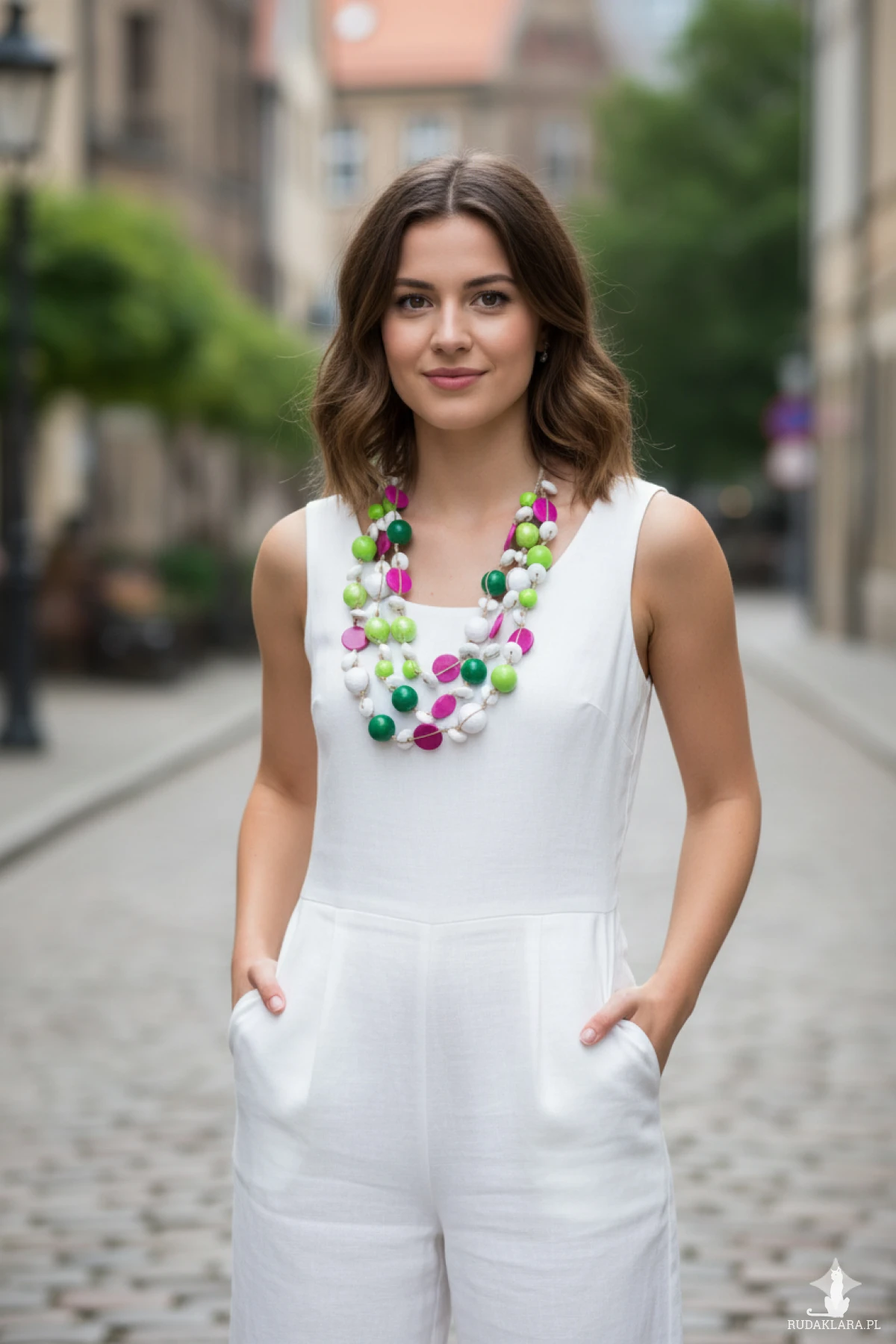 Wprowadź do swojej garderoby eksplozję koloru z naszym naszyjnikiem typu maxi/kolia.