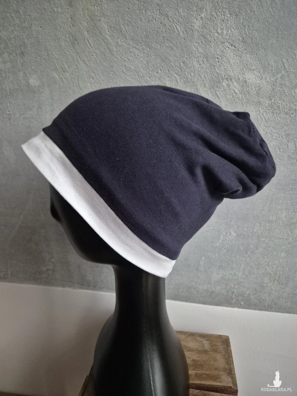 czapka  granatowo-biała rozmiar uniwersalny miła świetna na codzienne noszenie dzianinowa a1