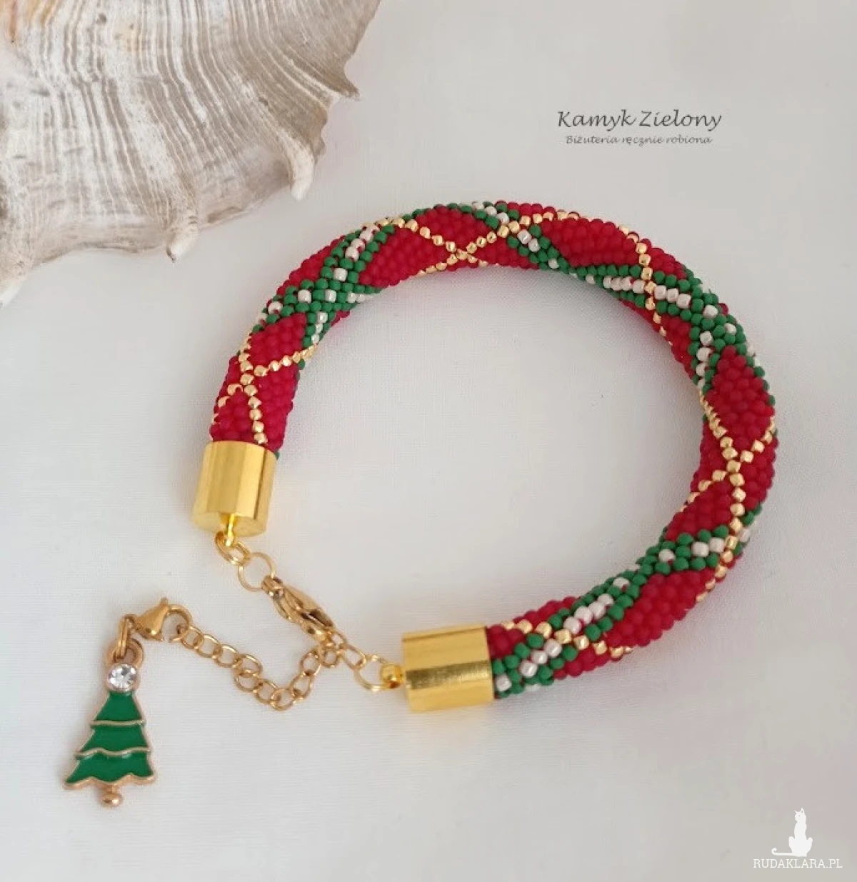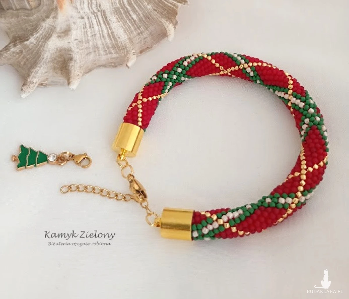 Bransoletka ma regulowaną długość - jest zapinana na karabińczyk z łańcuszkiem przedłużającym. Ozdobę łańcuszka stanowi zawieszka w formie malutkiej choinki, którą jednak można samodzielnie odpiąć i bransoletkę nosić przez cały rok!