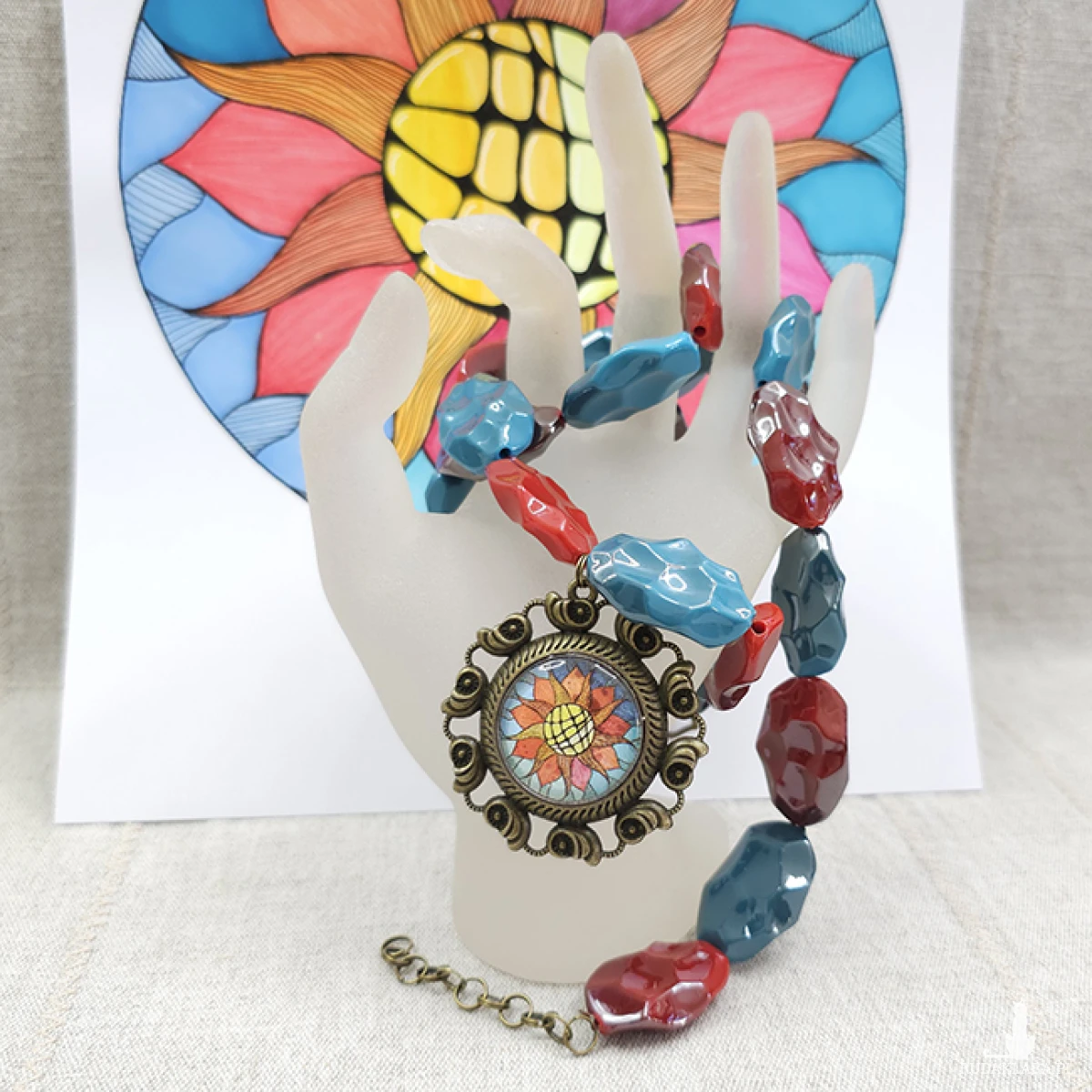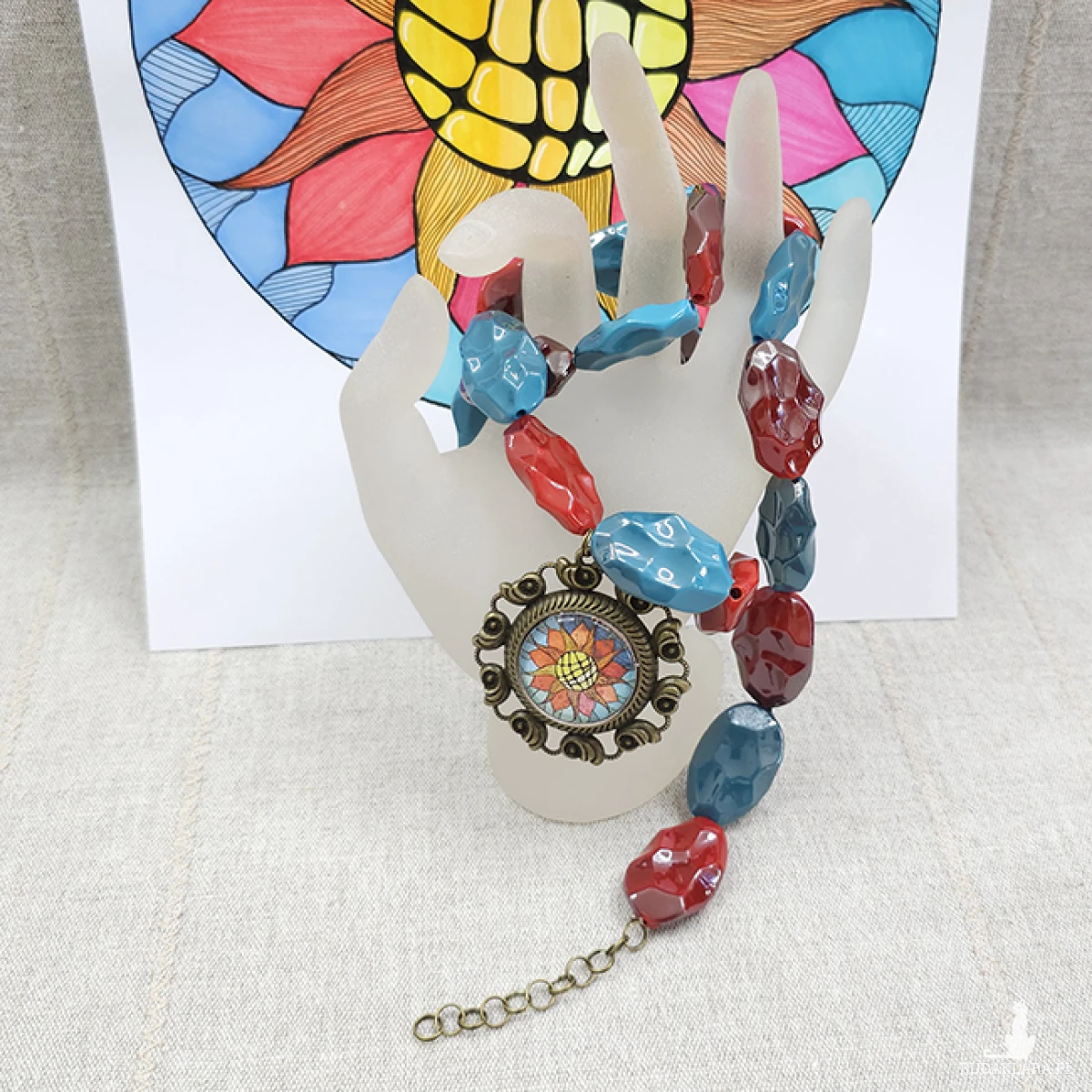 6743 Wyjątkowy Naszyjnik "Kwiatowy Witraż"