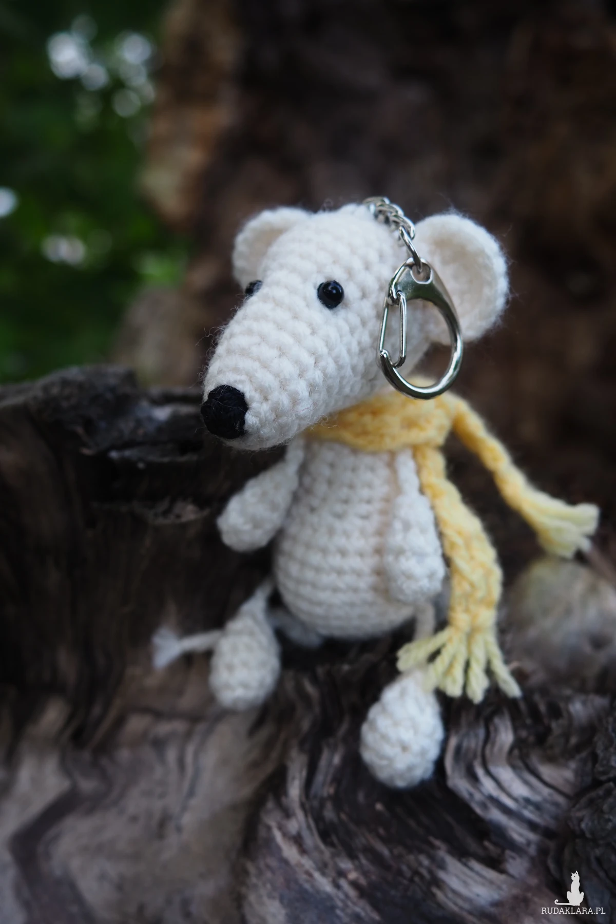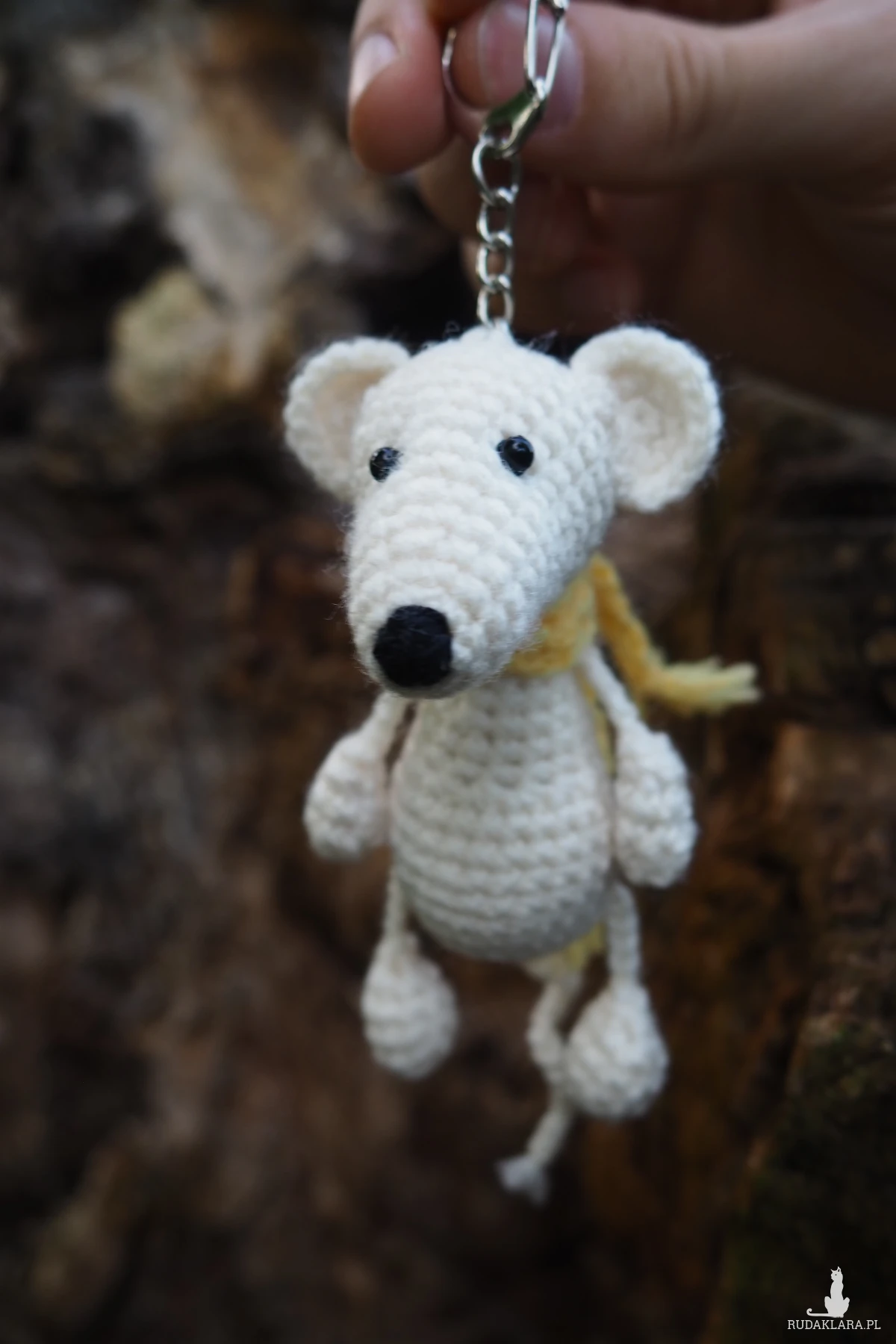 Sympatyczny brelok szczurek wykonany ręcznie z włóczki na szydełku.