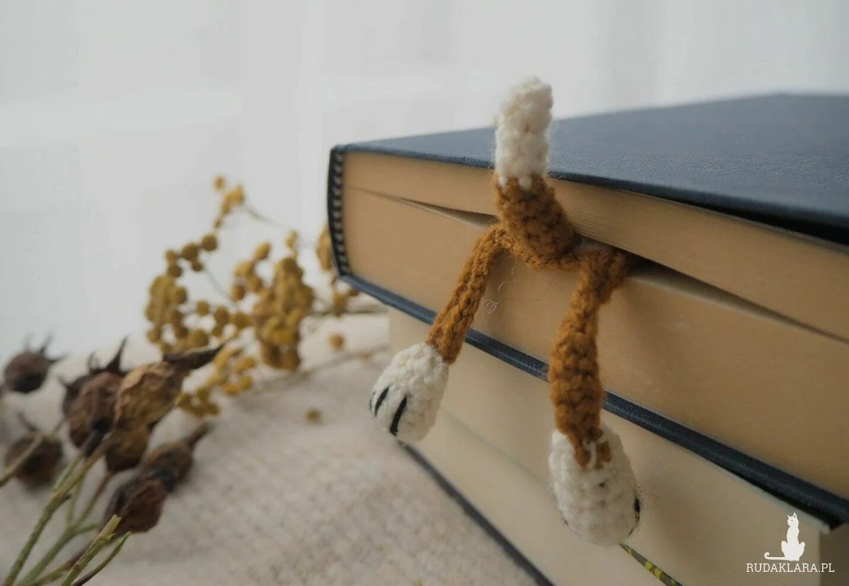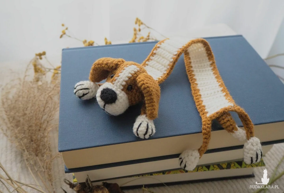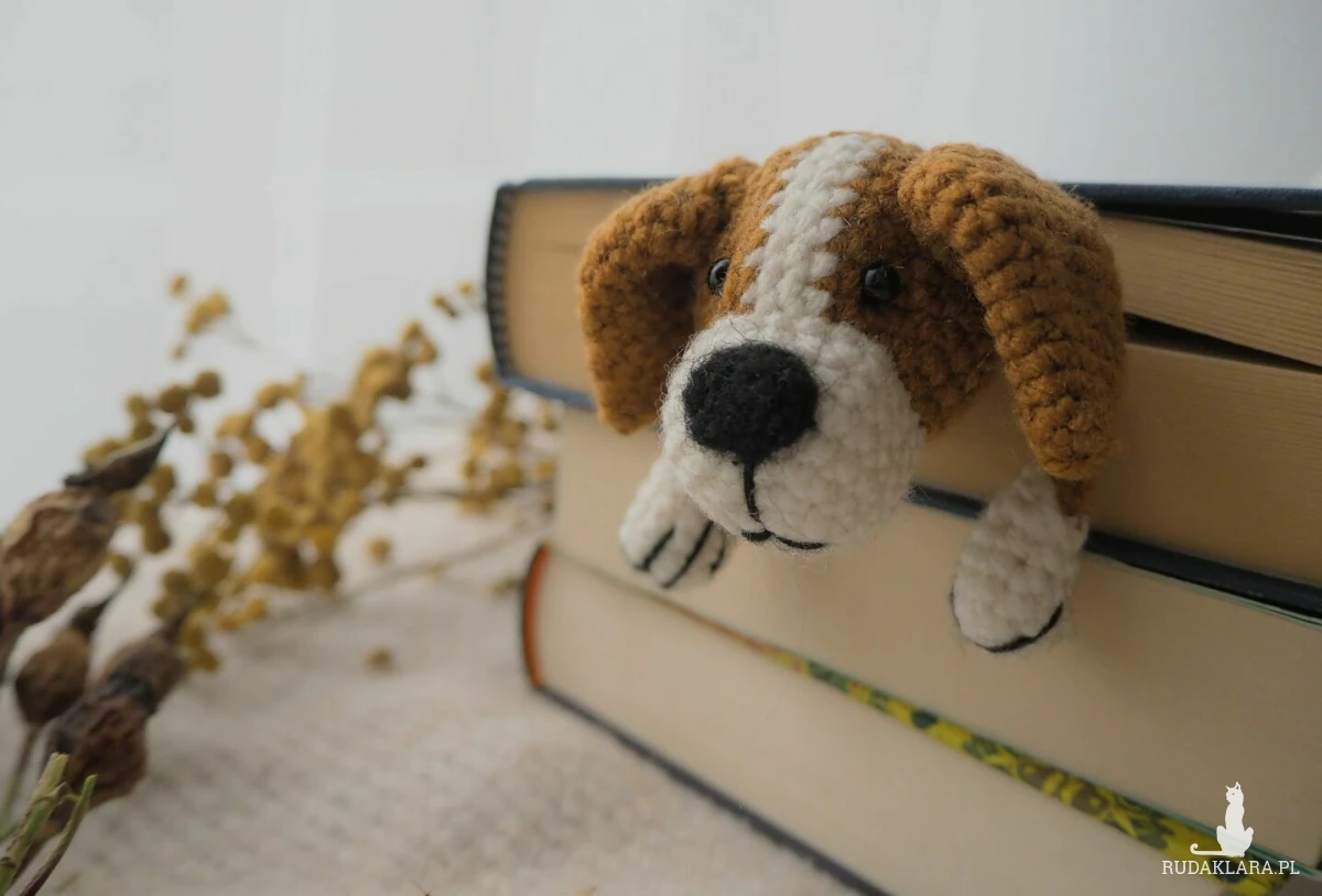 Zakładka do książki z sympatycznym pieskiem wykonana z włóczki na szydełku.