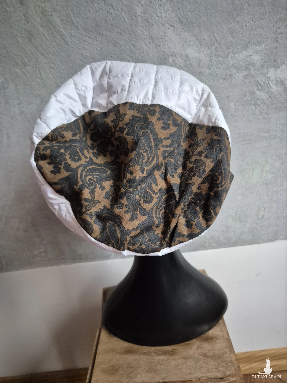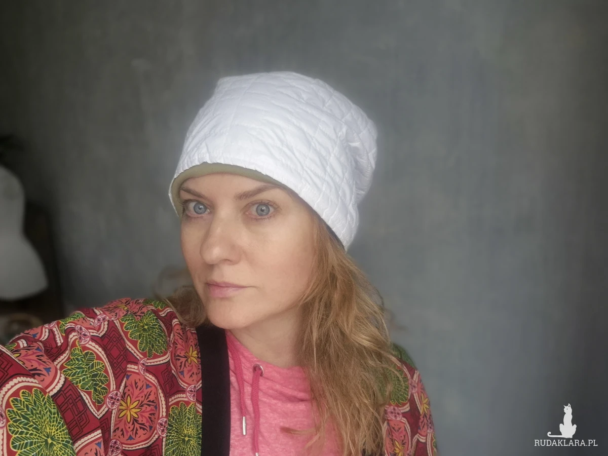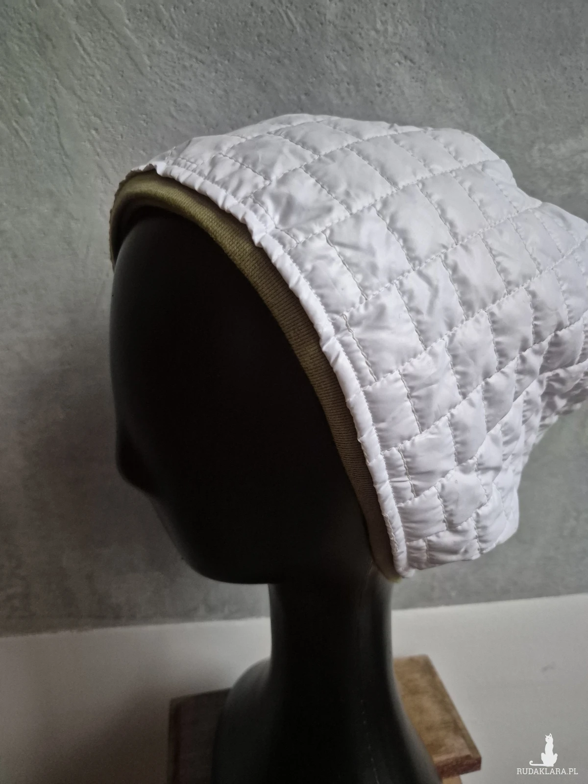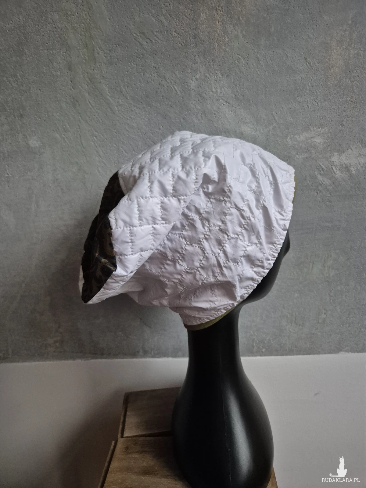 Czapka pikowana Biała nieprzemakalna na podszewce Góra materiałowa zielona rozmiar uniwersalny wykonana w pojedynczym egzemplarzu rękodzieło polecam Box W1