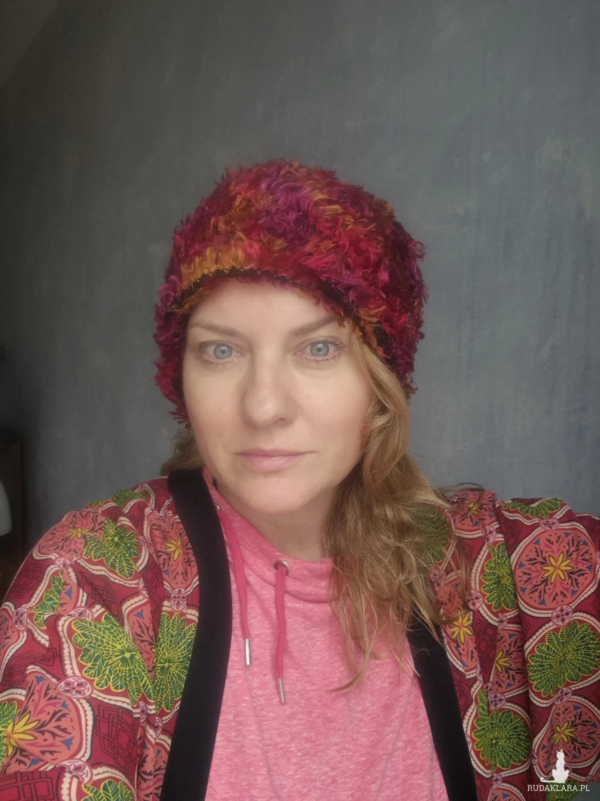 Czapka futrzana bordowa na podszewce miękka miła rozmiar uniwersalny wykonana w pojedynczym egzemplarzu rękodzieło polecam Box W1
