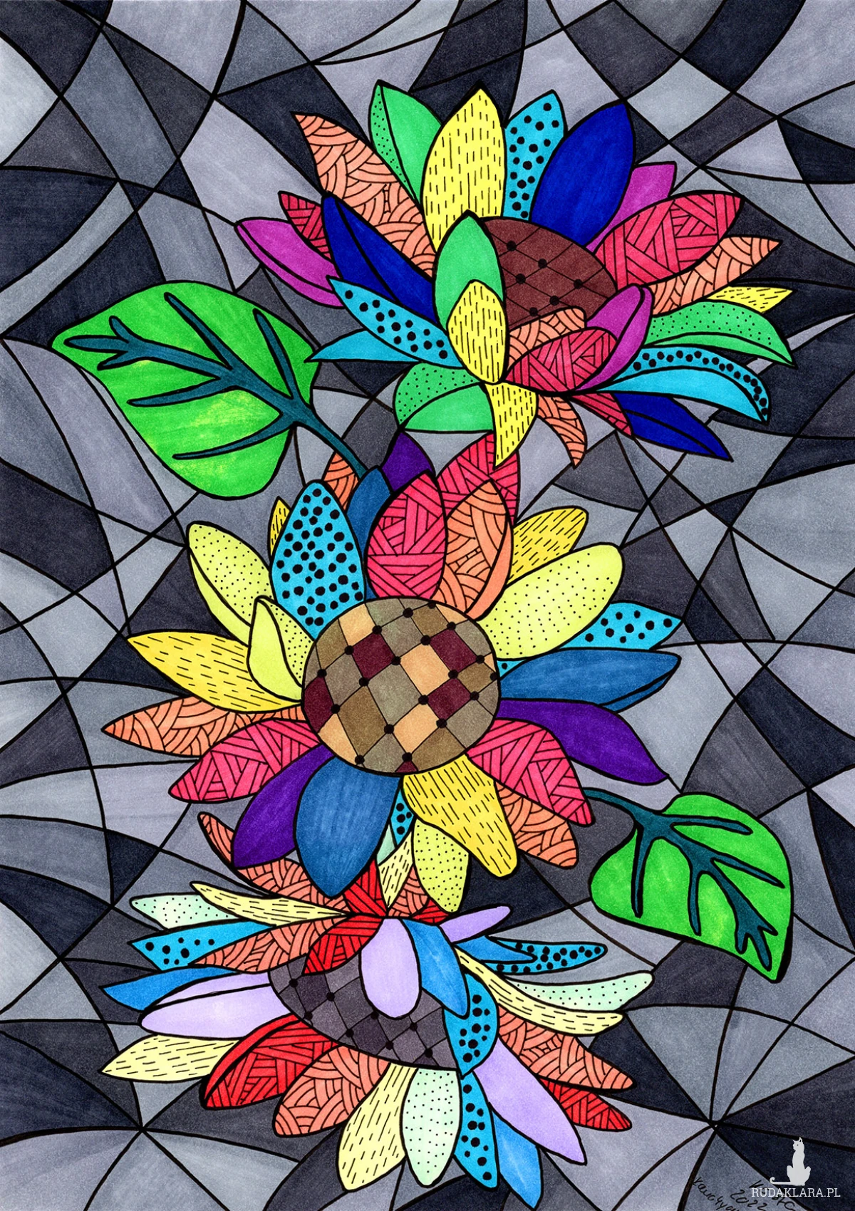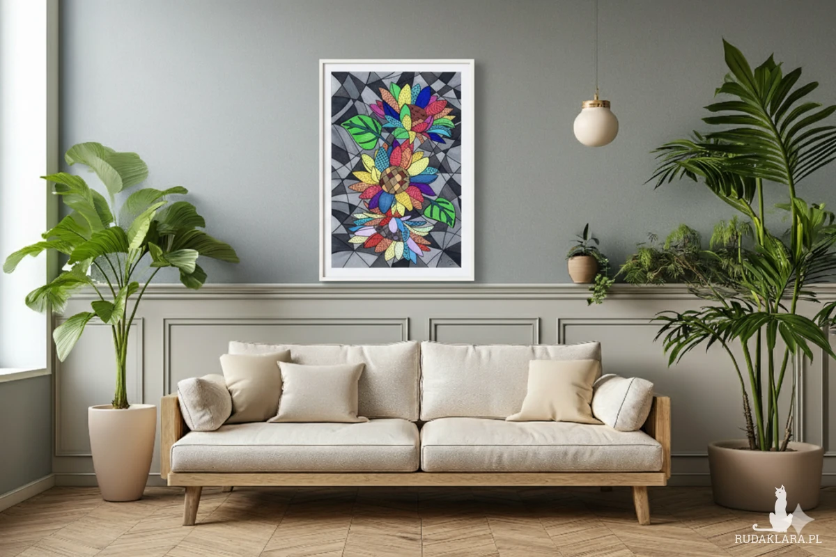 Ten rysunek jest wizualnym świadectwem niezachwianego optymizmu, bogactwa indywidualnej ekspresji oraz triumfu witalności nad szarym otoczeniem.