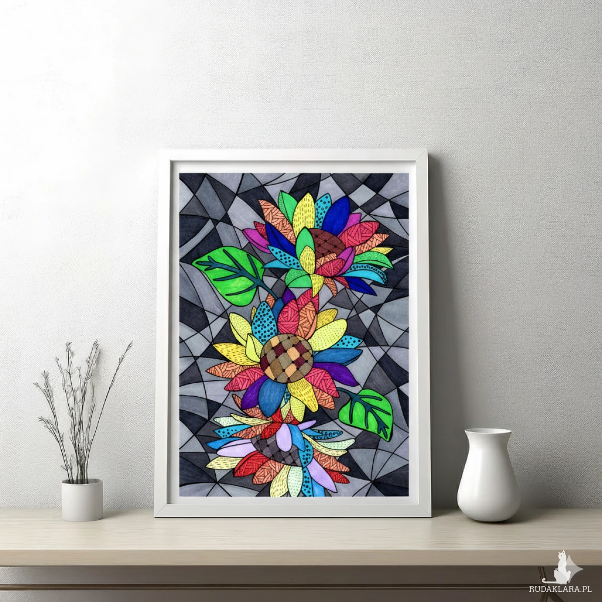 Wydruk autorskiego rysunku na satynowym papierze o gramaturze 200g/m2 - sprzedawany bez ramki - rysunki w ramkach na zdjęciach to wizualizacje.