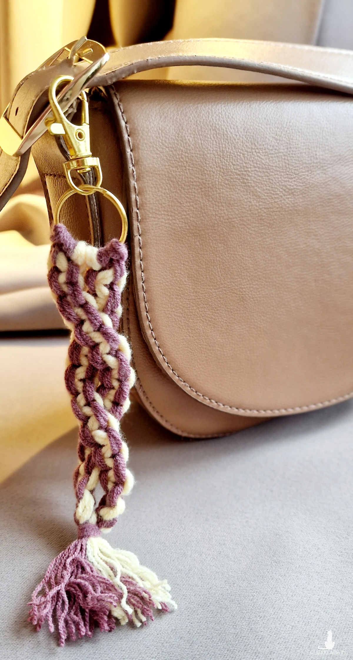Ręcznie robiony brelok z włóczki. Miękki, lekki i wyjątkowy – idealny jako ozdoba do torebki, kosmetyczki, kluczy lub plecaka. Zapraszam.