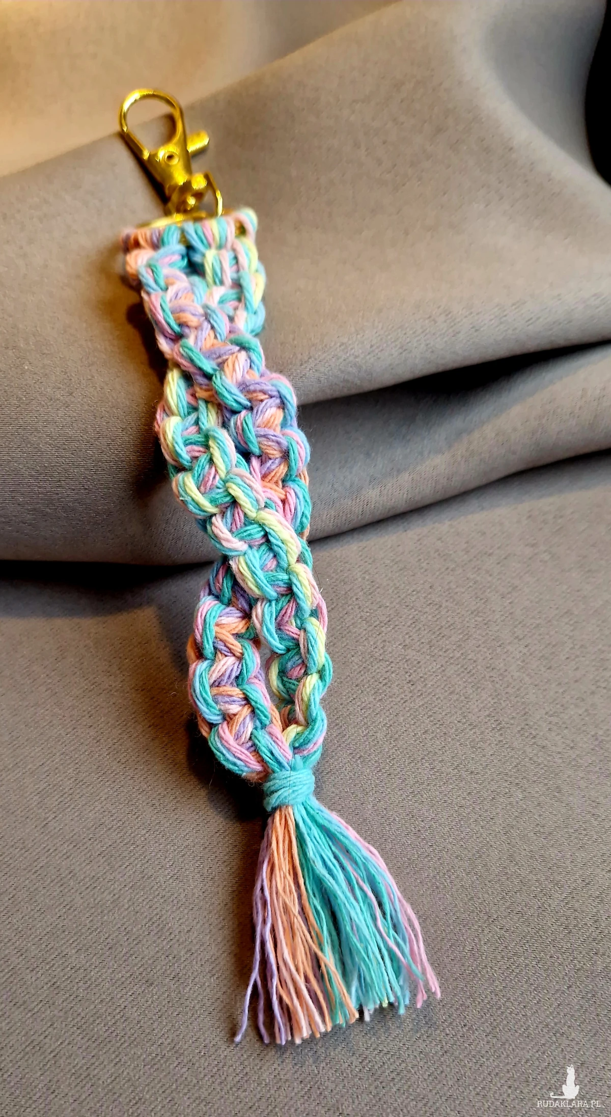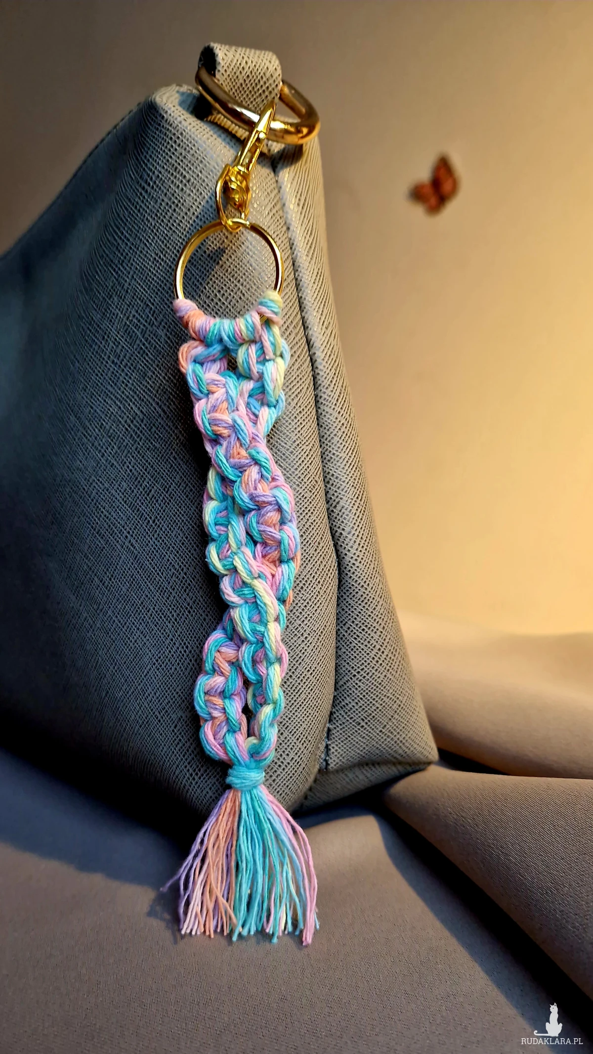 Ręcznie robiony brelok z kolorowej muliny. Miękka ozdoba torebki, kosmetyczki, kluczy lub plecaka. Zapraszam.