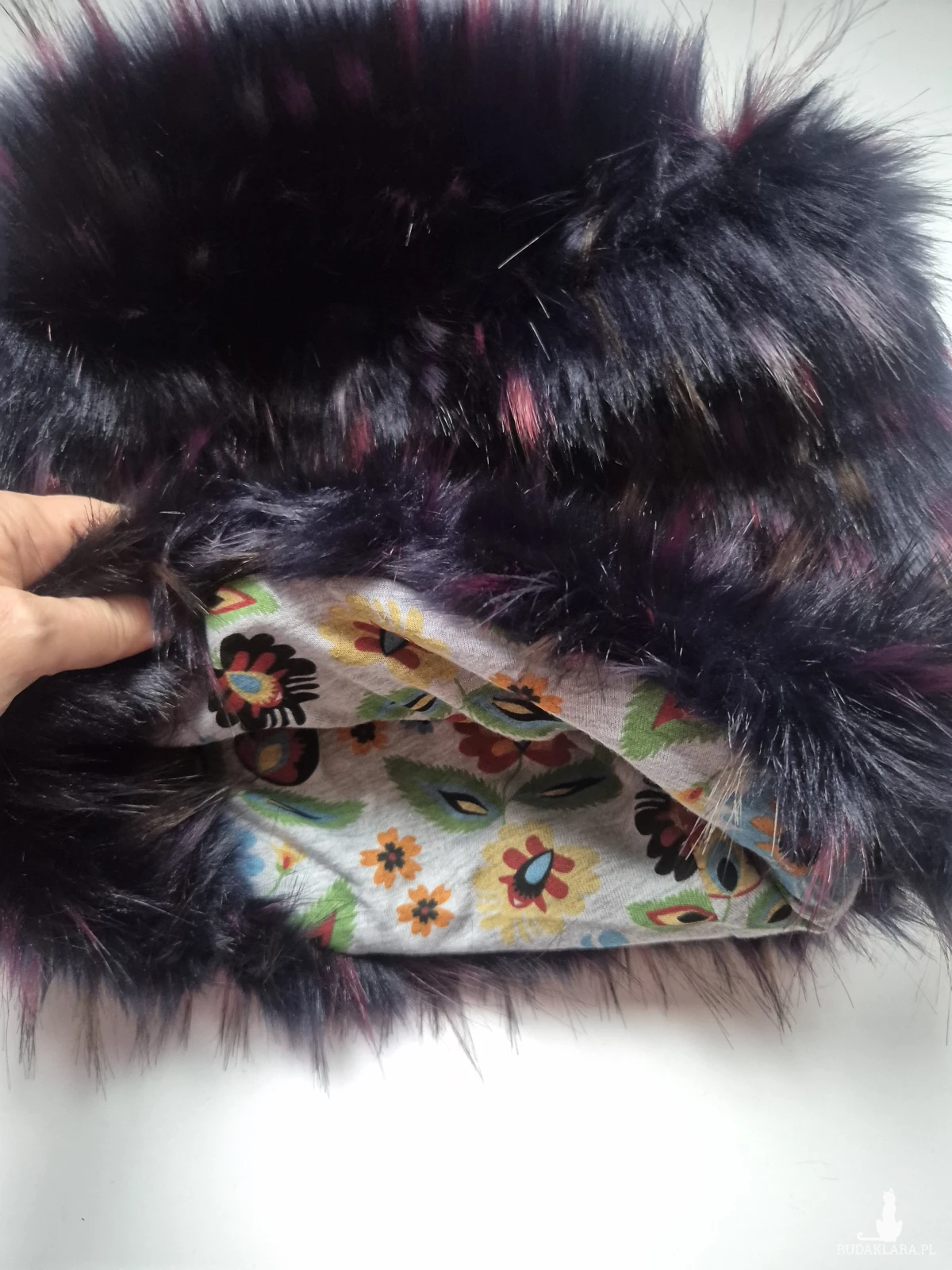 Szalona czapka ze sztucznego futra ,duża zwariowana ,rozmiar na większą głowę albo bujne włosy w centymetrach 59 -61 obwód ,miękka i lekko rozciągliwa, w stylu trochę jak zimowa czapka brytyjskich żołnierzy. Ostatnia, bez powtórek dla kogoś kto uwielbia być widoczny i nie chce znikać w tłumie,polecam box w1
