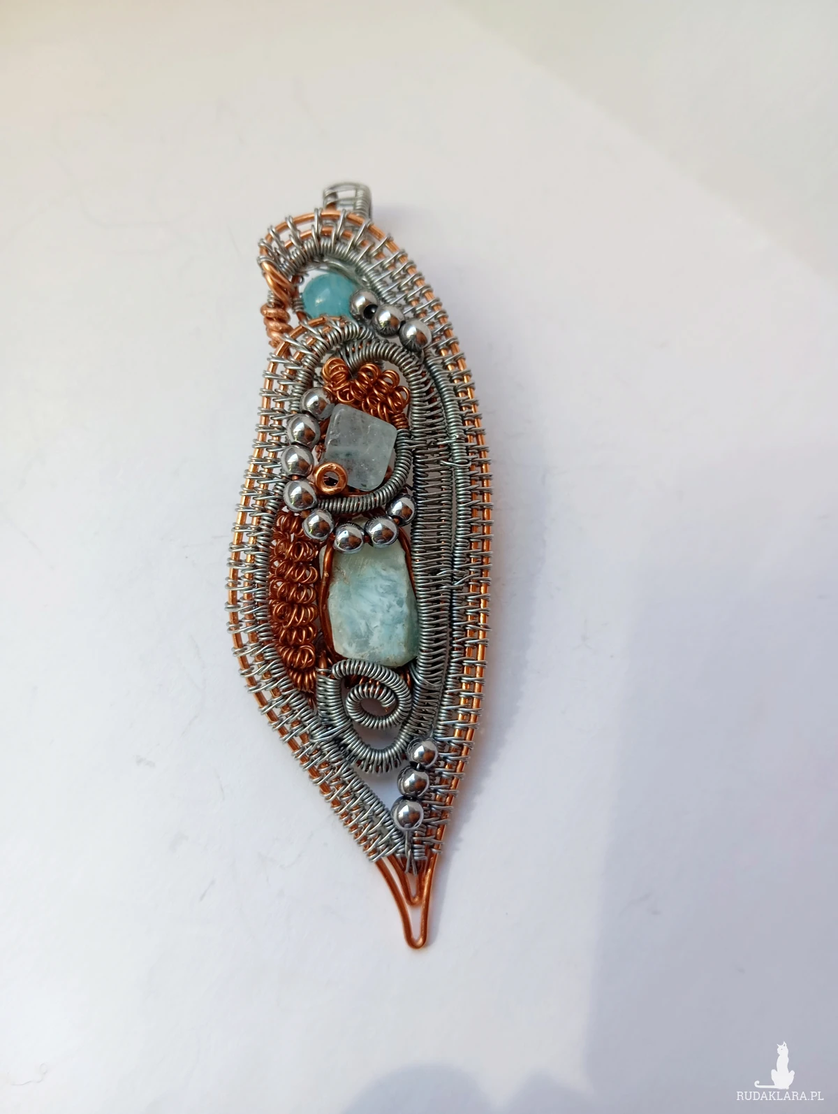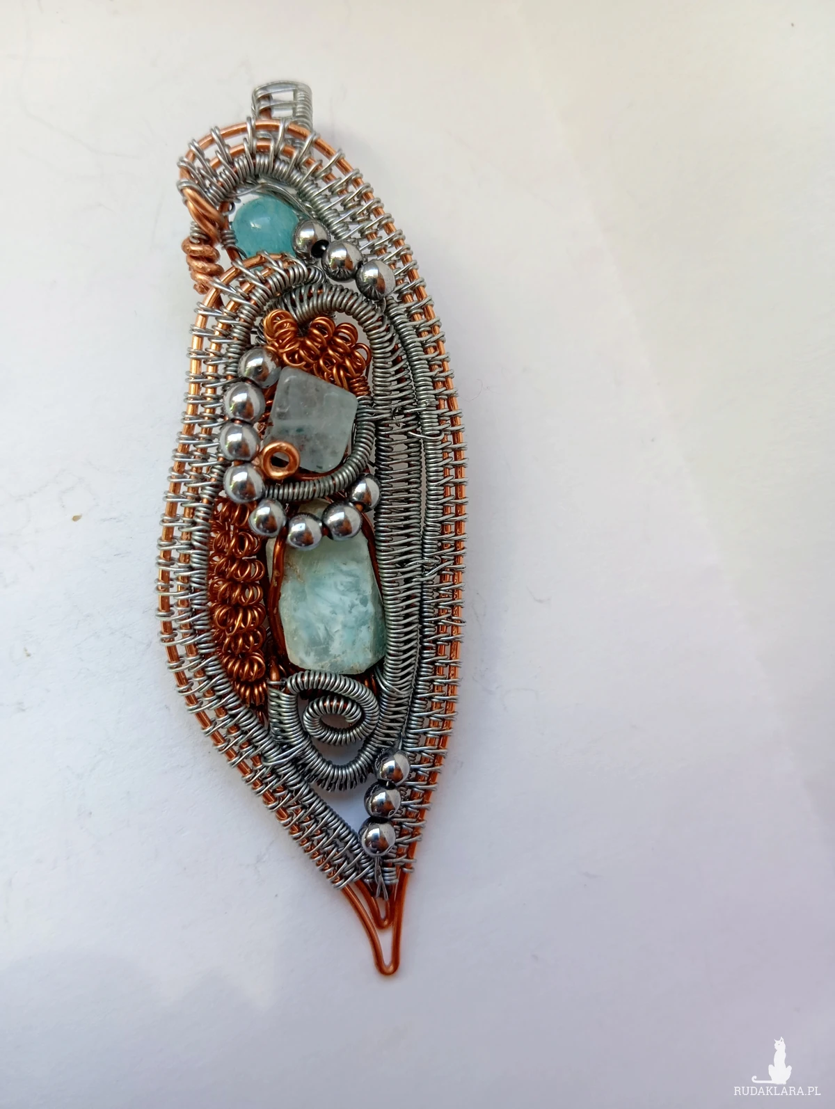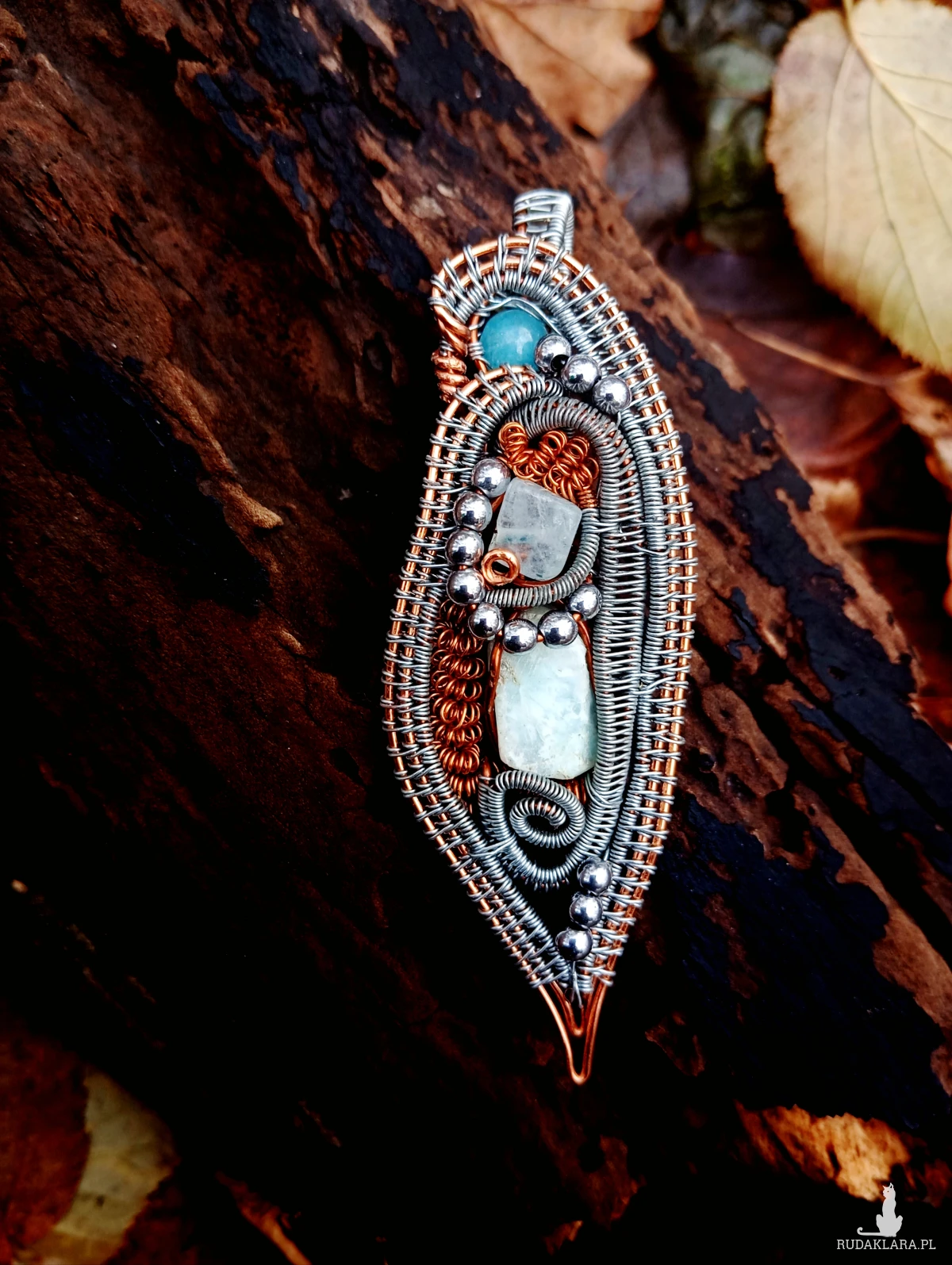 Zawieszka z kamieniami naturalnymi w miedzi i stali