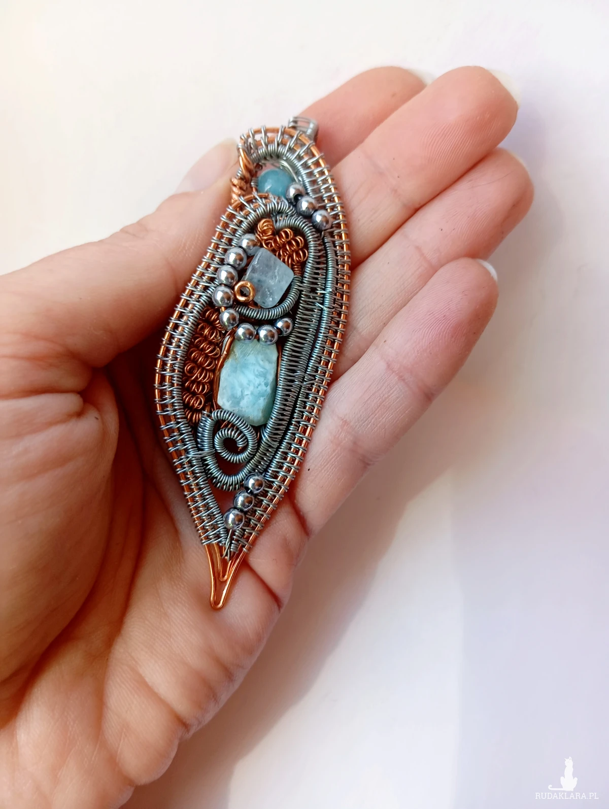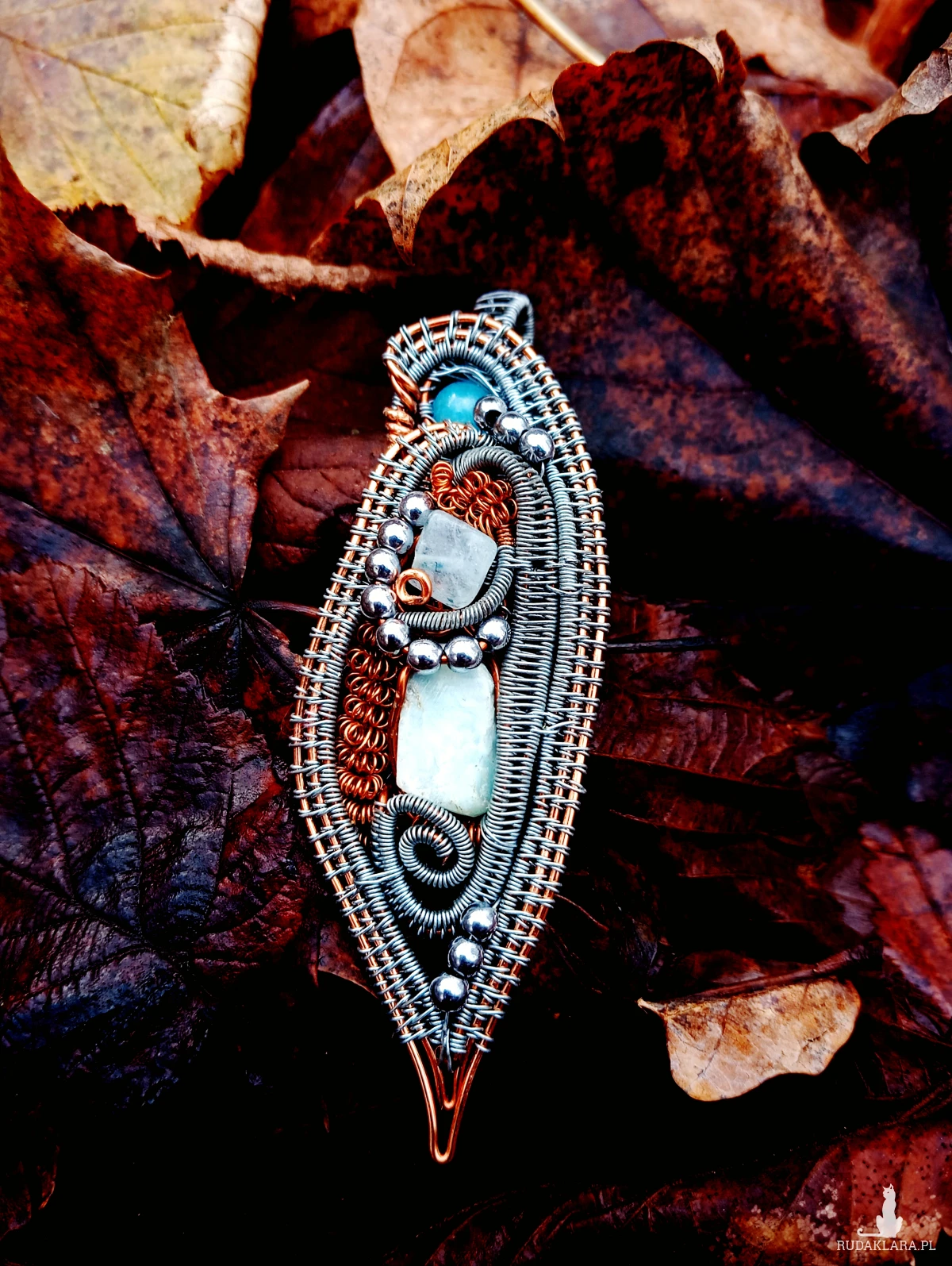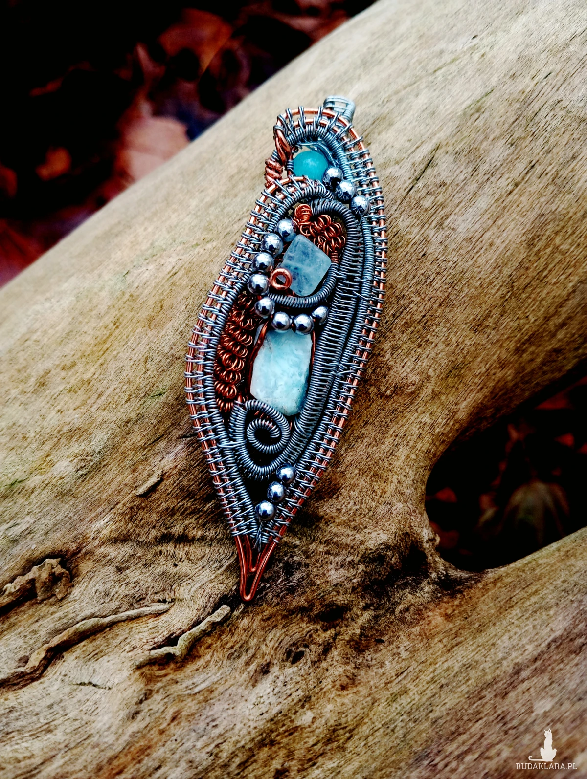Zawieszka z kamieniami naturalnymi w miedzi i stali