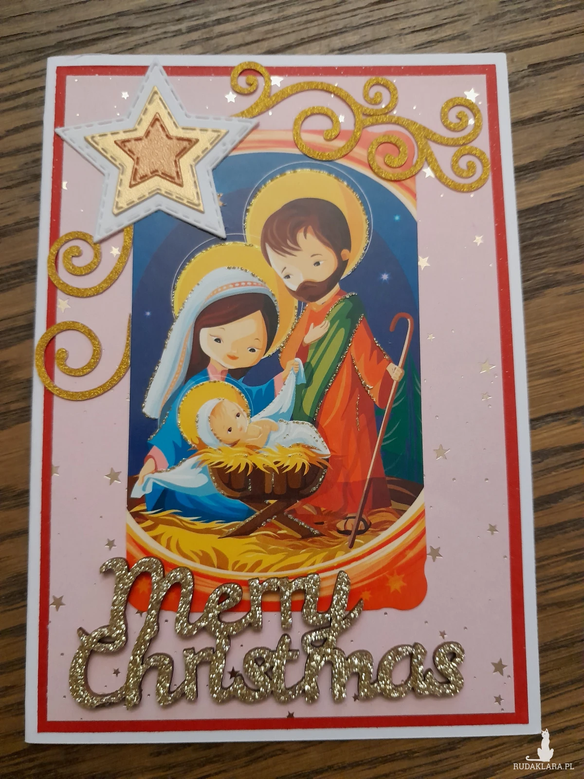 Kartka ręcznie wykonana na Boże Narodzenie, pusta wewnątrz, biała koperta w cenie