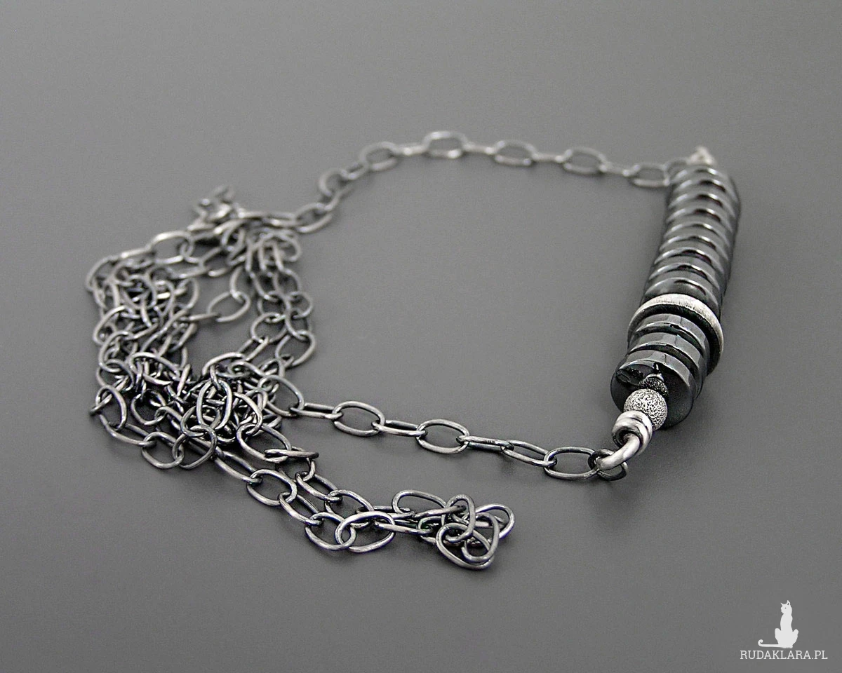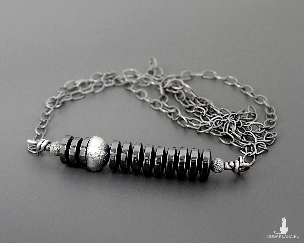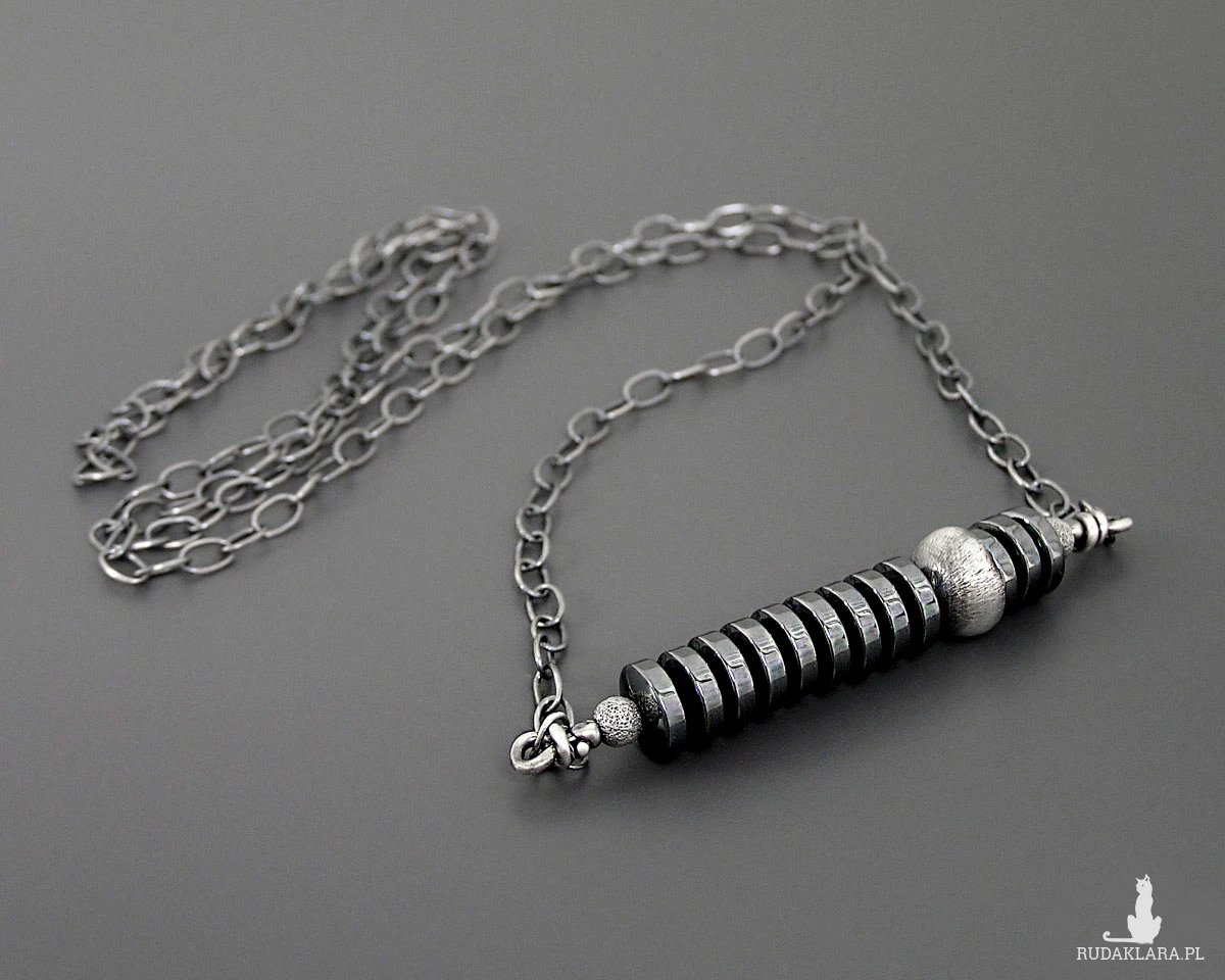 Surowy naszyjnik z hematytami, srebro 925
