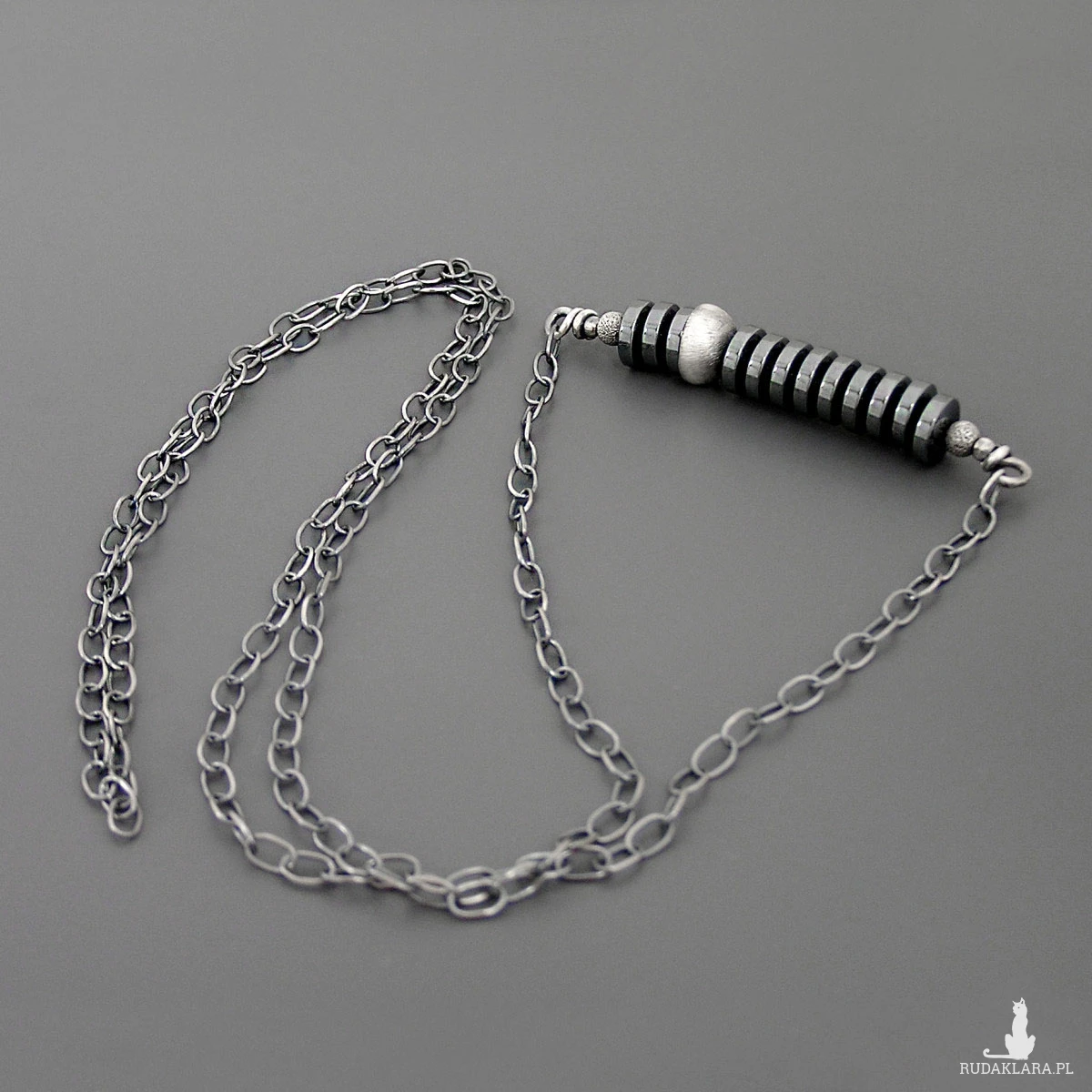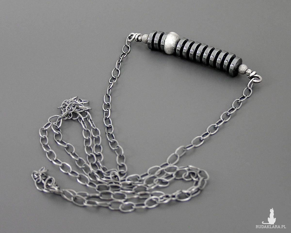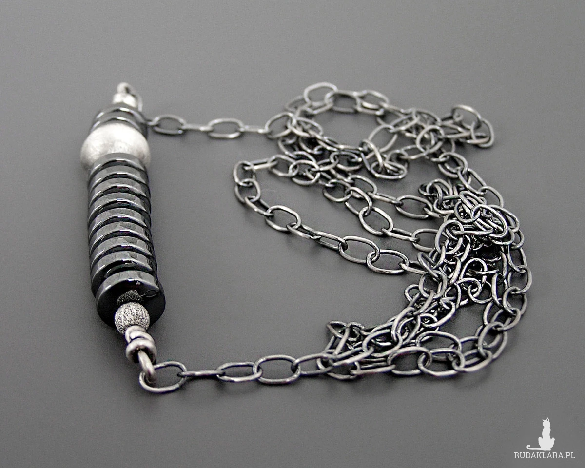 Surowy naszyjnik z hematytami, srebro 925